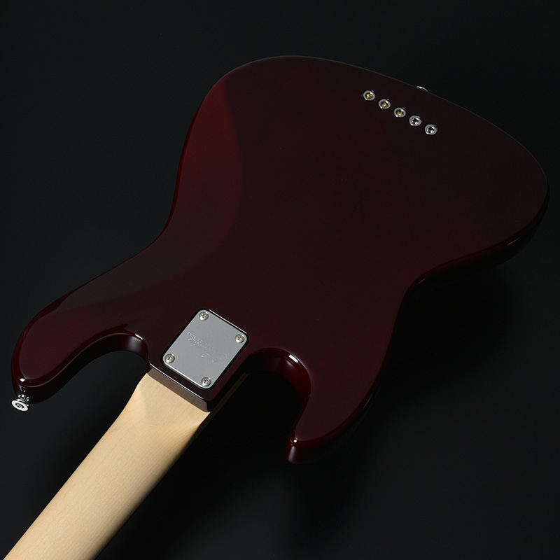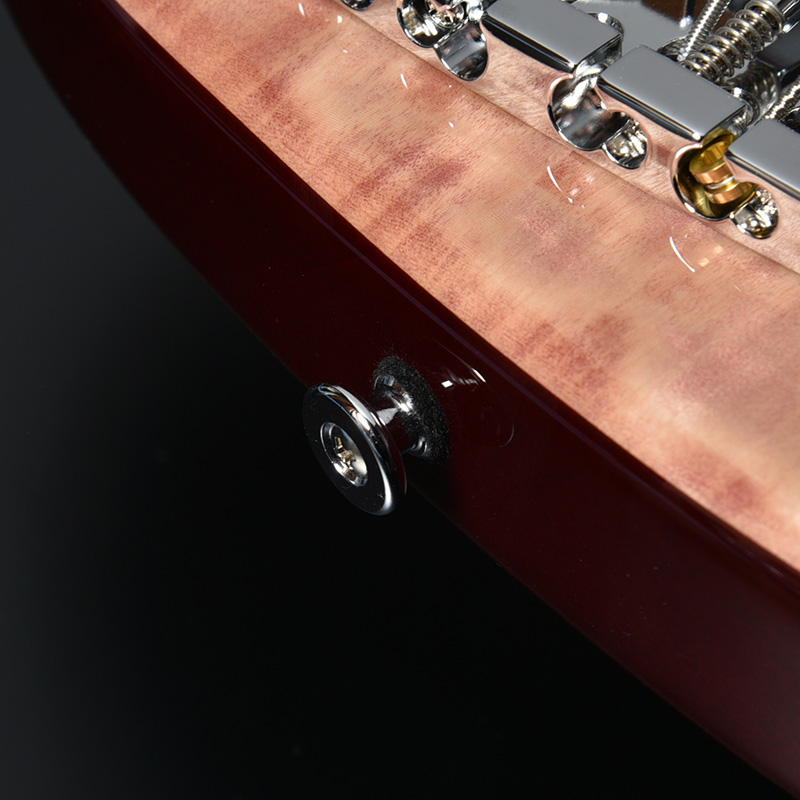 “Red Collection”に合わせて製作された本機のカラーリングは、Vintage Wine Redと名付けられました。文字通り年代物のビンテージワインを思わせる、くすみを帯びた味わい深い赤を表現しています。マッチングカラーのアクリルピックガードとの組合せにより、ギター全体を通して美しい赤の表現を目指しました。