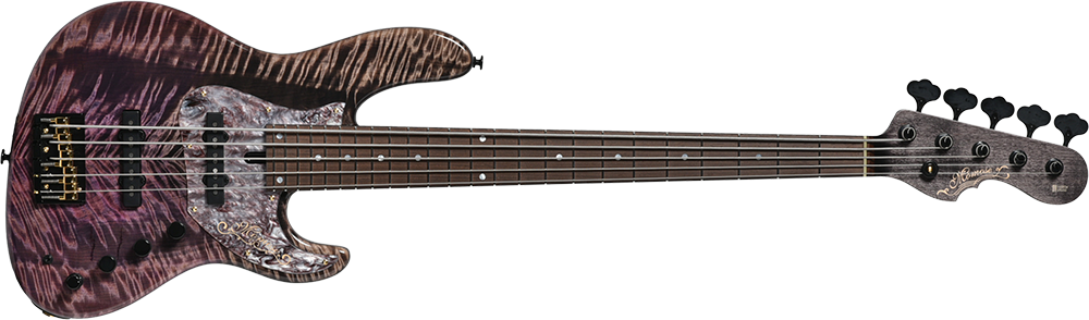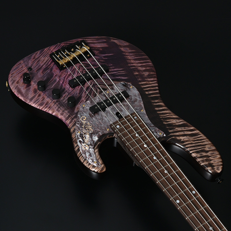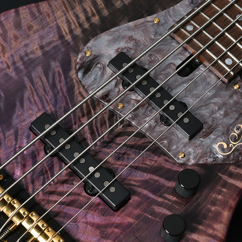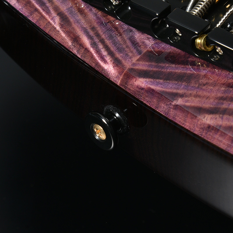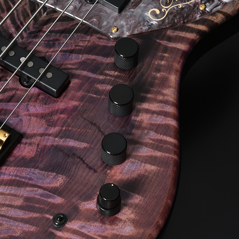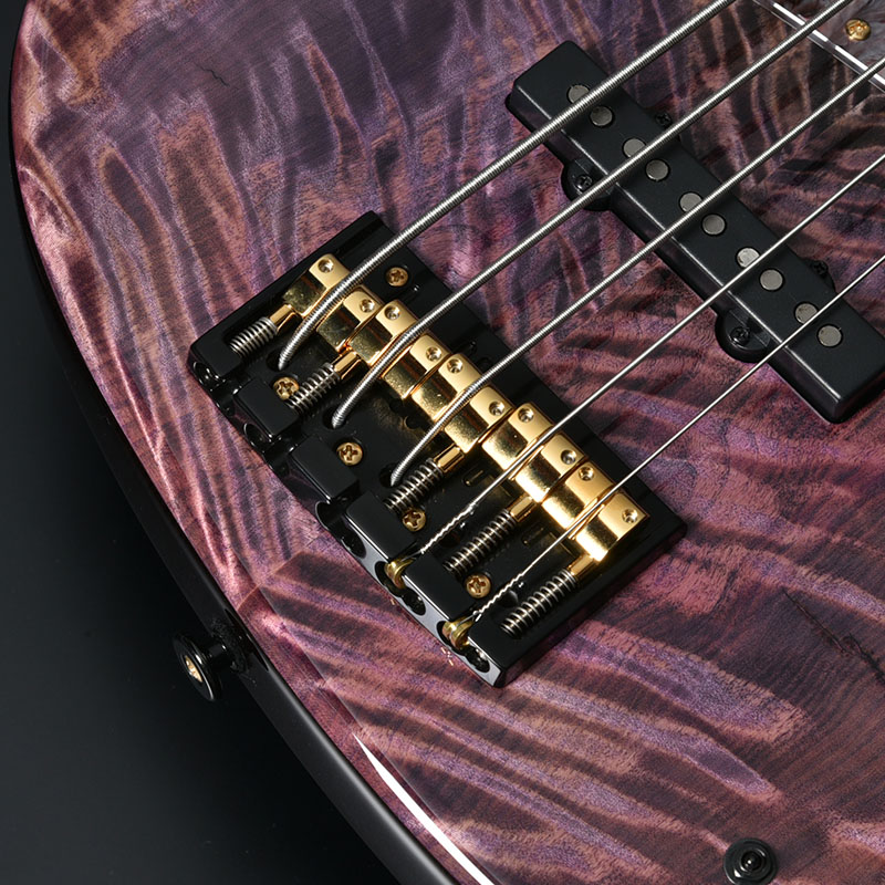 メイプル材などと比べて強度が高く、非常に硬質な特性を持つ「ウェンジ」。指板材に取り入れられることで、安定感のある抜けの良いサウンドを実現します。本モデルではネックのメイプル材を反りやねじれに強い「柾目(まさめ)」で製材することで、安定感抜群の演奏性と末長く愛用いただける仕様を実現しています。