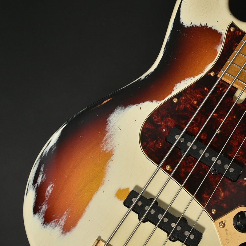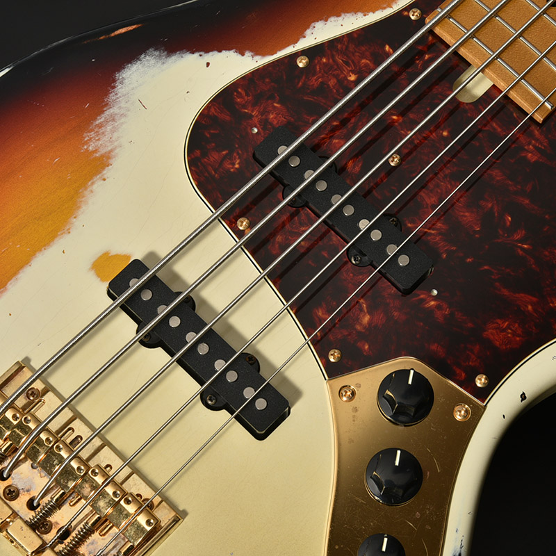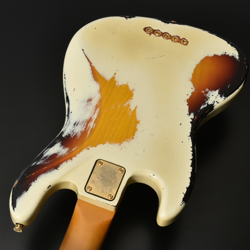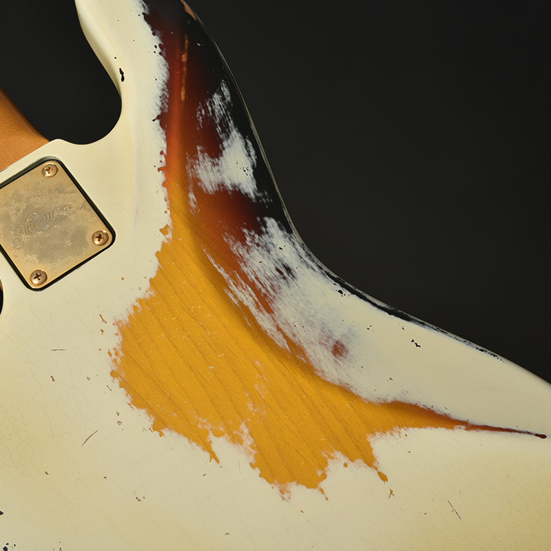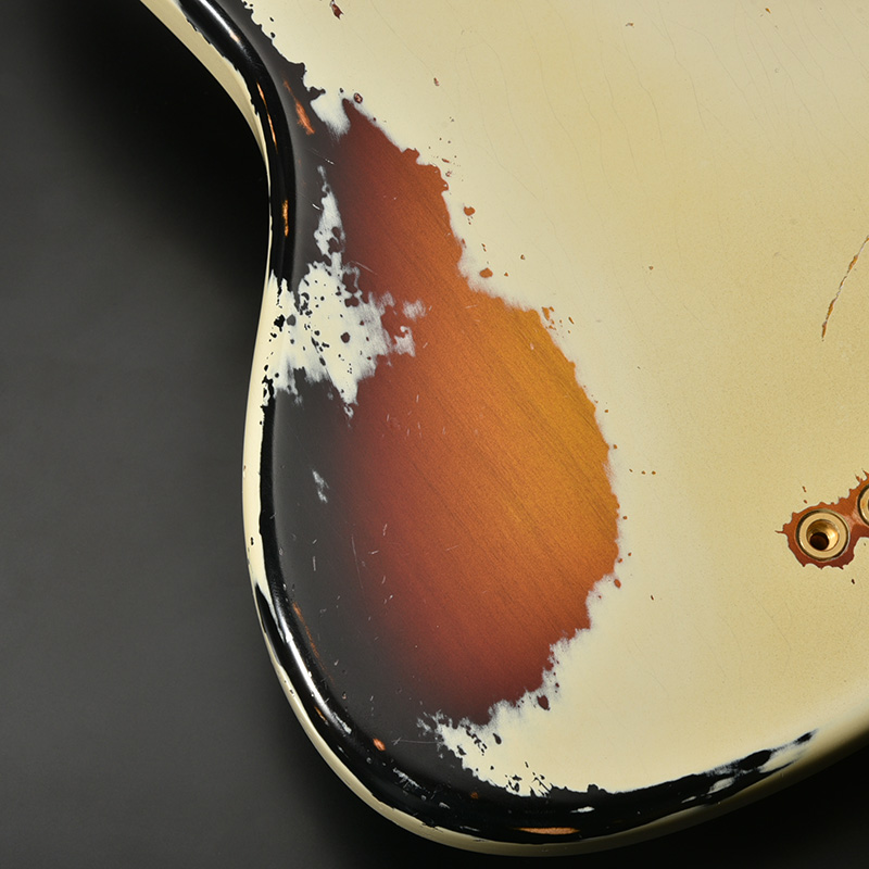 インパクト抜群のマルチレイヤーカラー&エイジド加工を施した一本。ボディはもちろん、各種金属パーツに至るまで自然な経年変化を再現。ボディには定番のアルダー材を採用し、実践的なサウンドを突き詰めています。