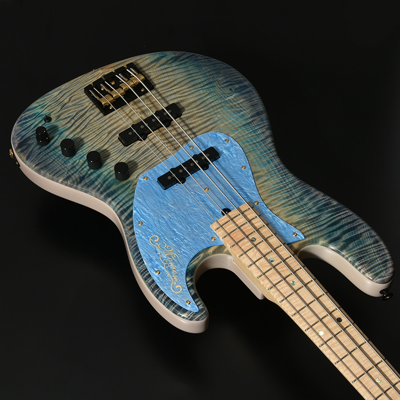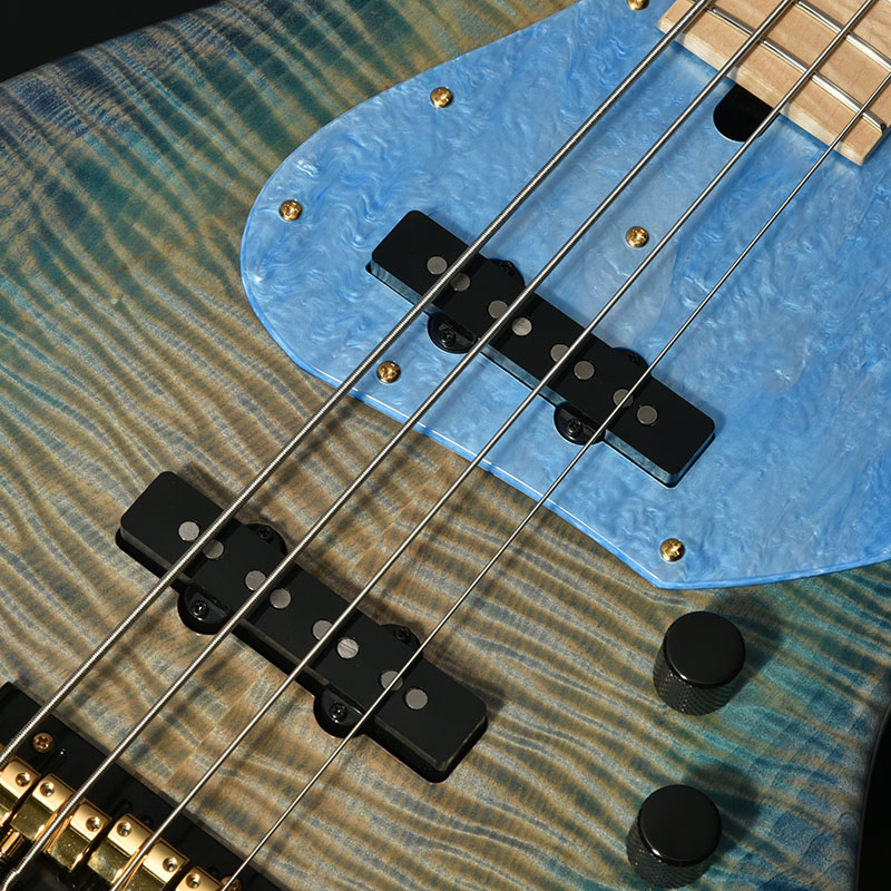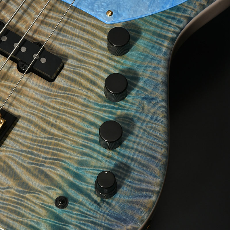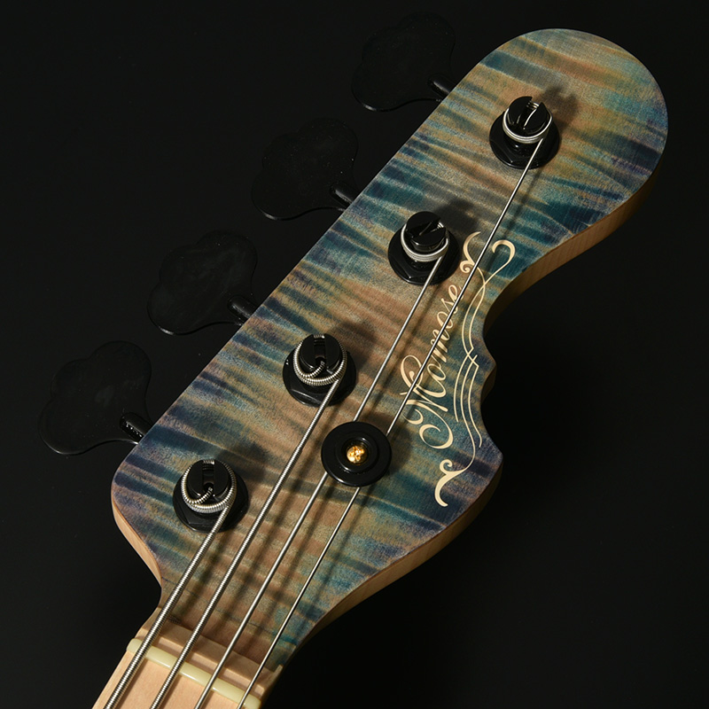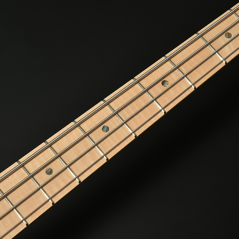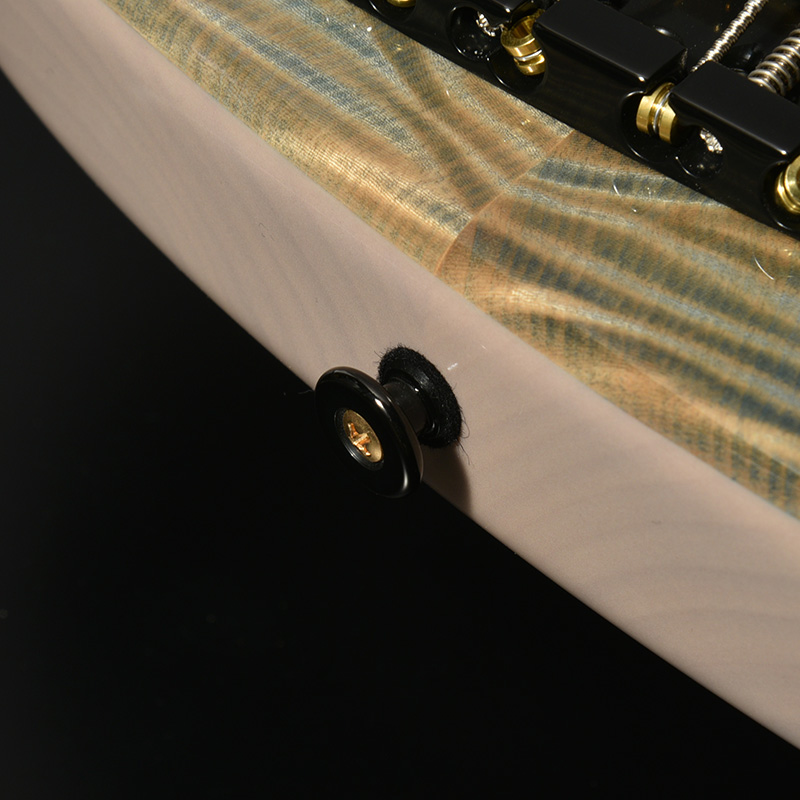 飛鳥工場の木材ストックより厳選されたハイグレードのフレイムメイプルを使用。限定モデルにふさわしいゴージャスなルックスがプレイヤーの手元を華やかに彩ります。本モデルではネックのメイプル材を反りやねじれに強い「柾目(まさめ)」で製材することで、安定感抜群の演奏性と末長く愛用いただける仕様を実現しています。