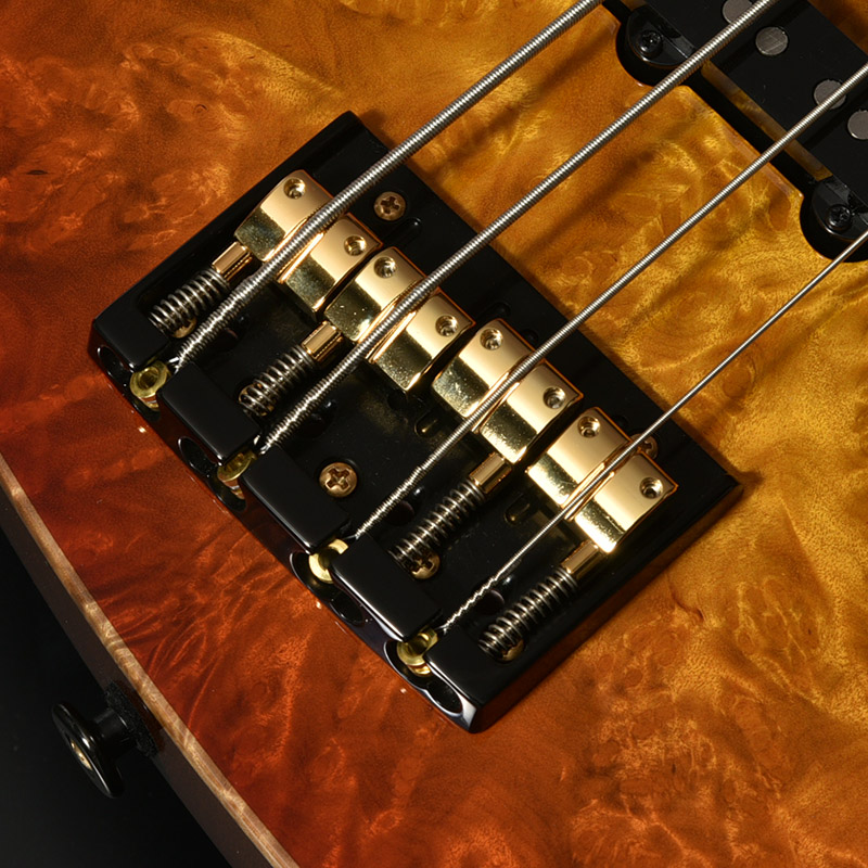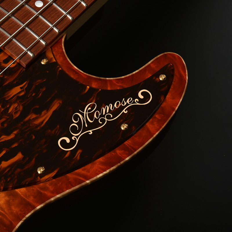 指板に用いられた「ブラッドウッド」は赤褐色の色味を持つ木材で、アタック感のあるキレの良いサウンドを生み出します。本モデルではネックのメイプル材を反りやねじれに強い「柾目(まさめ)」で製材することで、安定感抜群の演奏性と末長く愛用いただける仕様を実現しています。