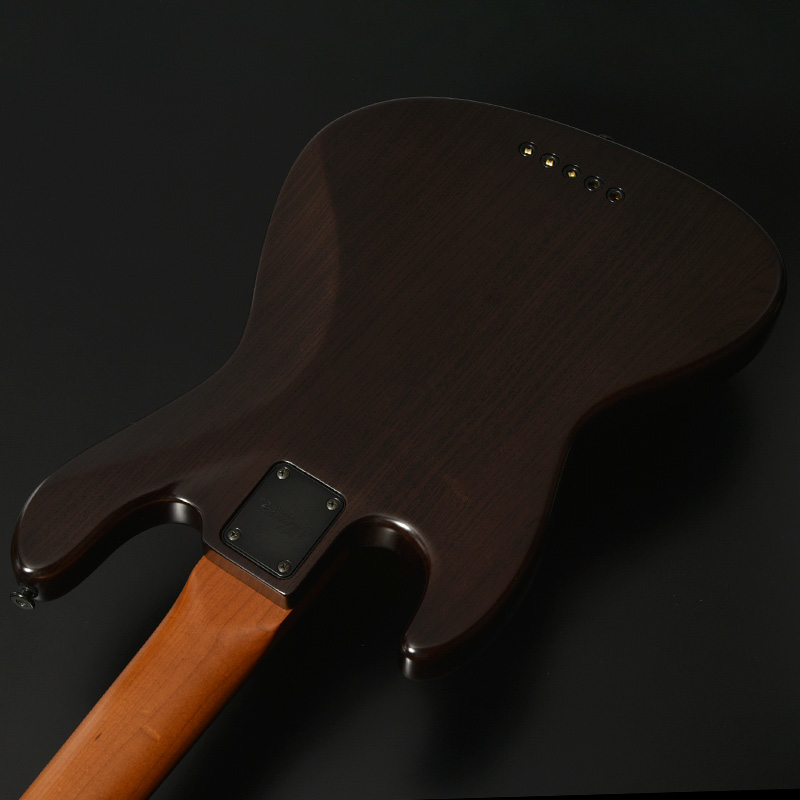 黒々とした高級感のあるルックスでおなじみのエボニー材を採用。定番のローズウッドなどに比べて重量があり、音の立ち上がりが早く輪郭のあるトーンと伸びやかなサスティーンを生み出します。ネックにはヴィンテージ材のような質感を再現する加工の「サーモウッド」仕様のメイプル材を採用しており、反りに強く、枯れた音色を特徴とします。