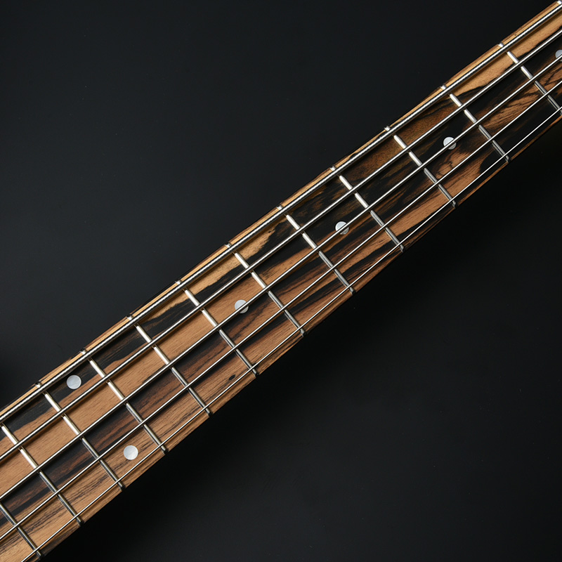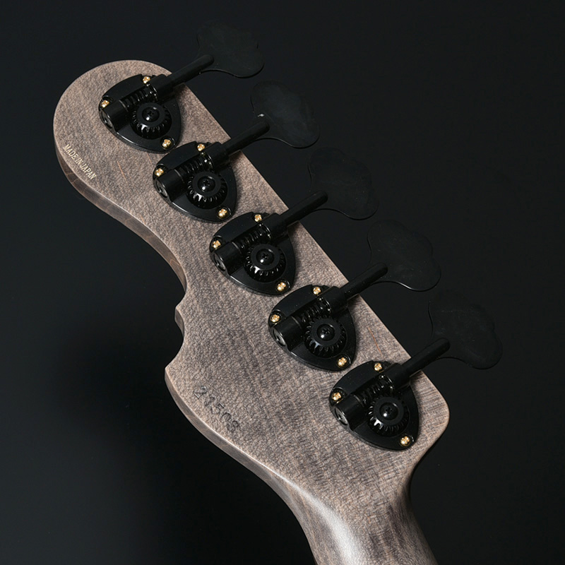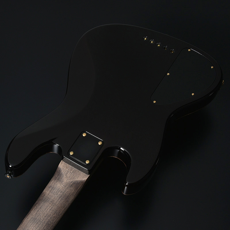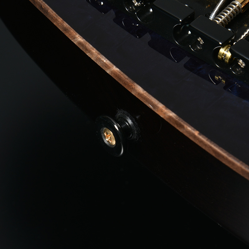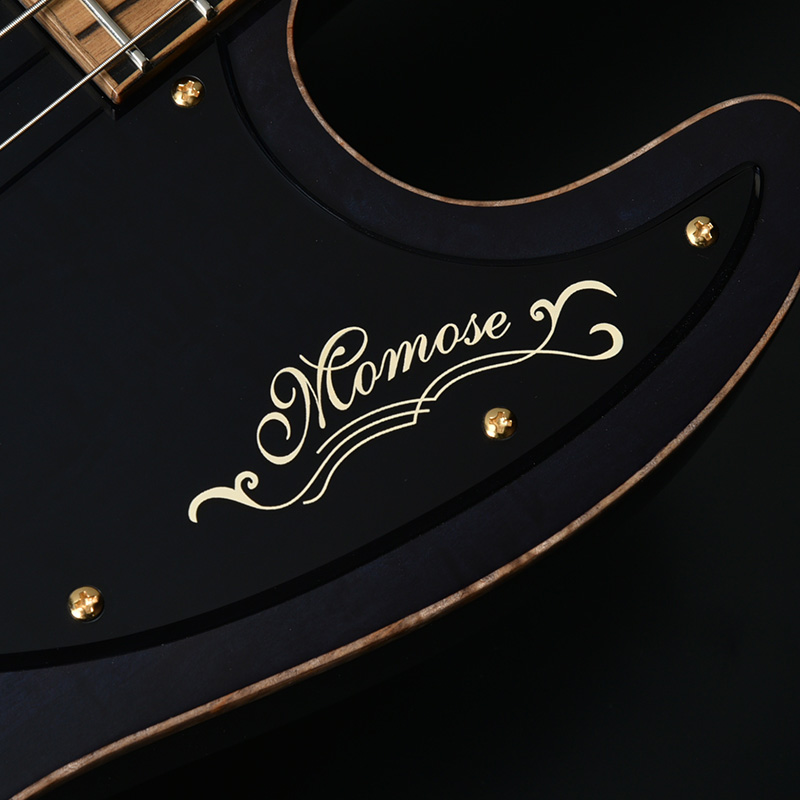 指板材にはペールムーンエボニーを使用。定番のローズウッドなどに比べて重量があり、音の立ち上がりが早く輪郭のあるトーンと伸びやかなサスティーンを生み出します。本モデルではネックのメイプル材を反りやねじれに強い「柾目(まさめ)」で製材することで、安定感抜群の演奏性と末長く愛用いただける仕様を実現しています。