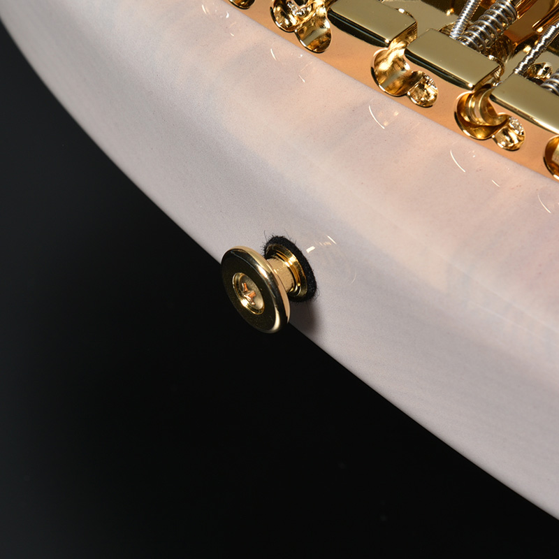 奈良県黒滝村産の「吉野千本桜」として知られる希少な桜材をボディトップに使用しています。採取地である吉野山は2004年に登録された世界遺産「紀伊山地の霊場と参詣道」を構成する地のひとつであり、日本屈指の桜の名所に数えられます。木肌の白く帯状になっている部分がボディ中央にくるよう組合せることで、より一層木目の美しさを際立たせています。