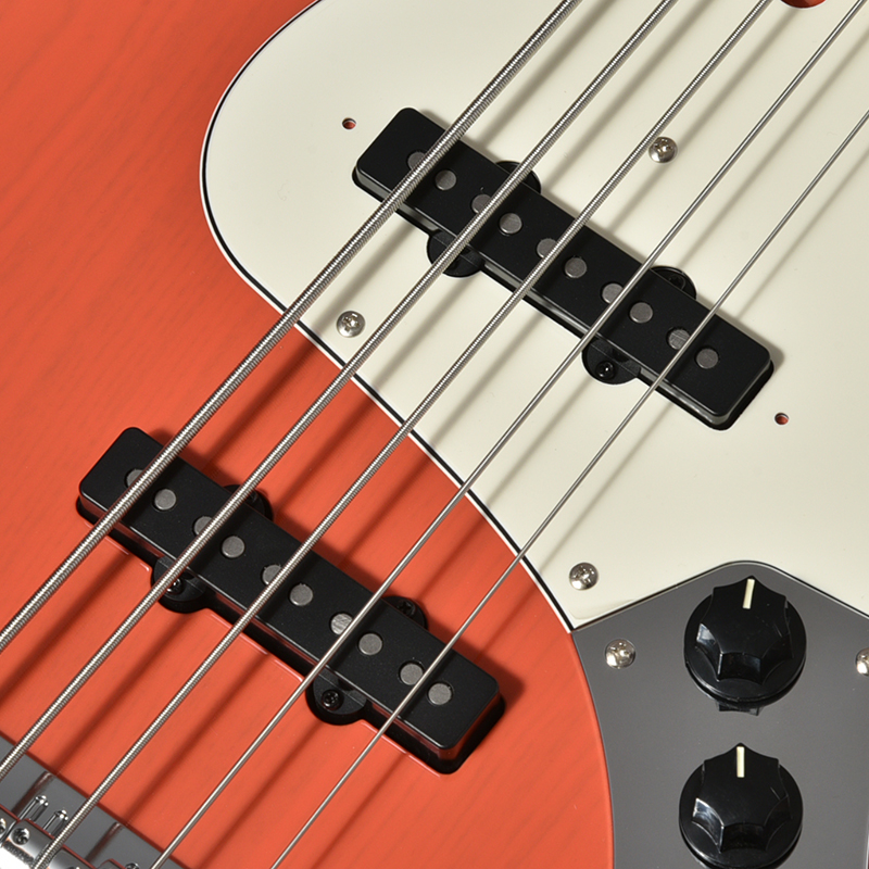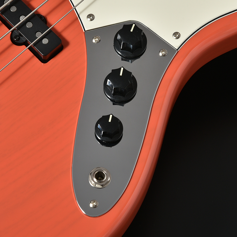 MJモデルでは一般的なJBタイプに比べ高音弦側ホーンのカットをより深めに設計。手の大きなプレイヤーでもスムーズにハイフレットへアクセスできる優れた演奏性を備えています。
