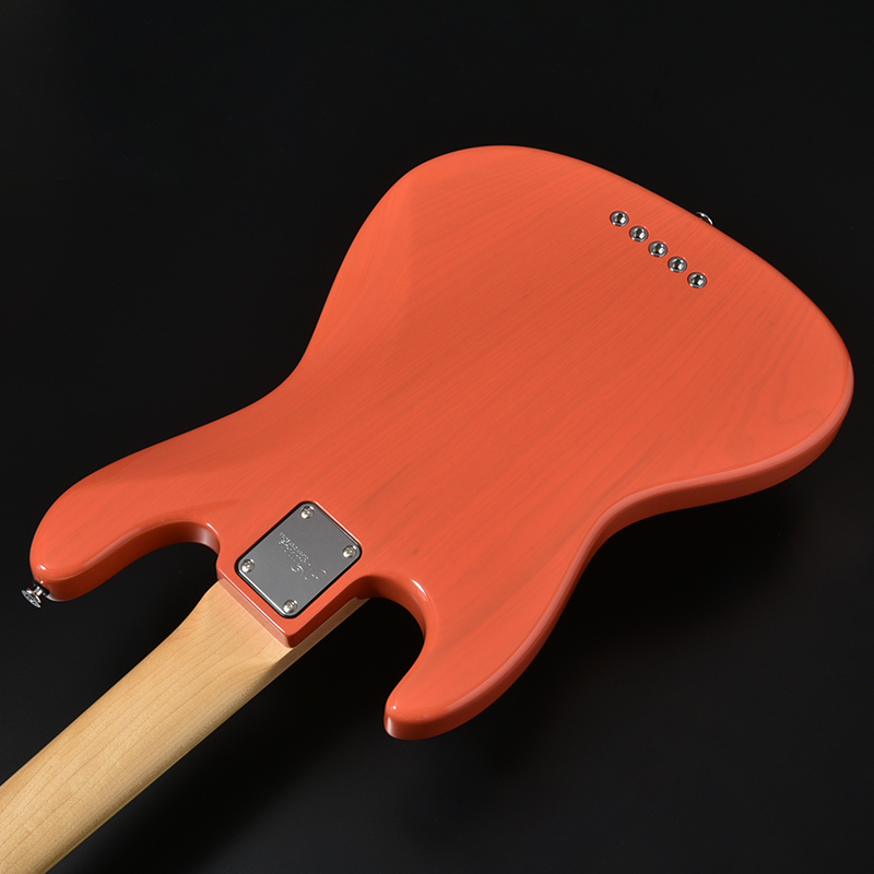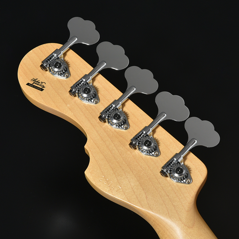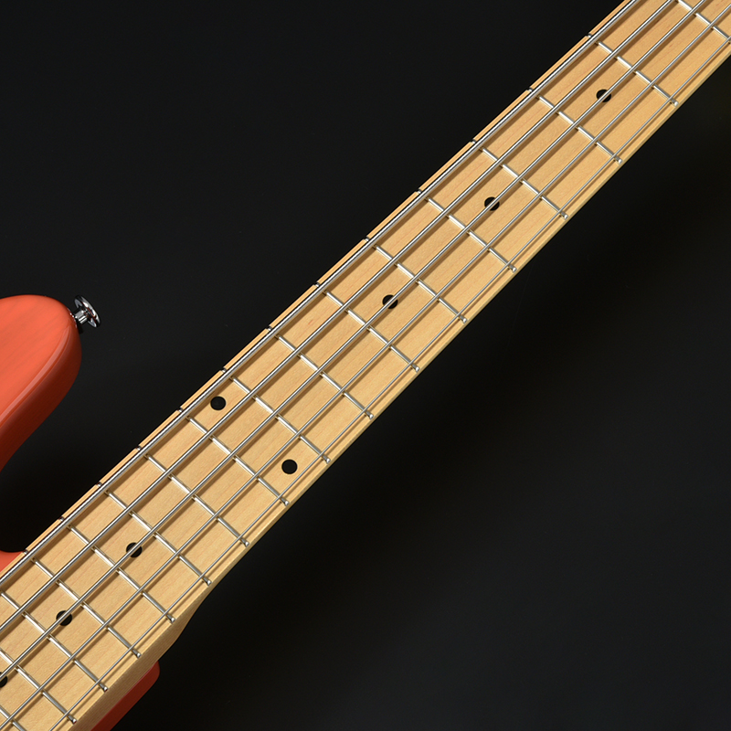 トラディショナルなスタイルを継承しつつも、Momose独自のブラッシュアップを施したオリジナル5弦ベースモデル”MJ・five”。飛鳥工場の職人により、木工から塗装、組み込みまで一本一本手作業にて仕上げられます。その精巧な作りから生まれるプレイアビリティの高さは、国内外のトッププレイヤー達からも支持を集めており、日本製ならではのゆるぎないクオリティを提供します。”MJ・Five2/R”では、アッシュボディとメイプル指板のコンビネーションを採用しています。