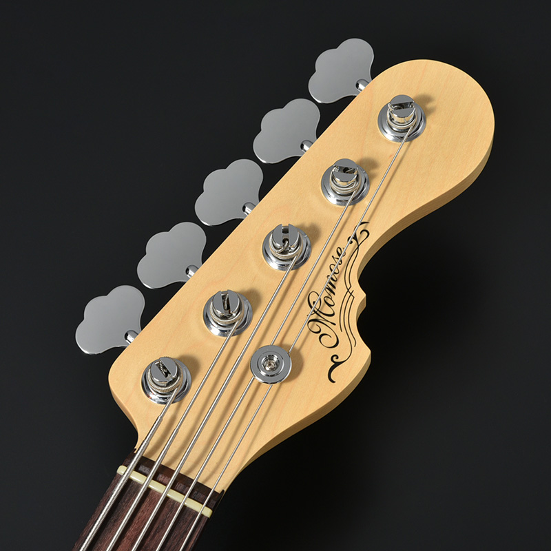トラディショナルなスタイルを継承しつつも、Momose独自のブラッシュアップを施したオリジナル5弦ベースモデル”MJ・five”。飛鳥工場の職人により、木工から塗装、組み込みまで一本一本手作業にて仕上げられます。その精巧な作りから生まれるプレイアビリティの高さは、国内外のトッププレイヤー達からも支持を集めており、日本製ならではのゆるぎないクオリティを提供します。”MJ・Five2/R”では、アッシュボディとローズウッド指板のコンビネーションを採用しています。