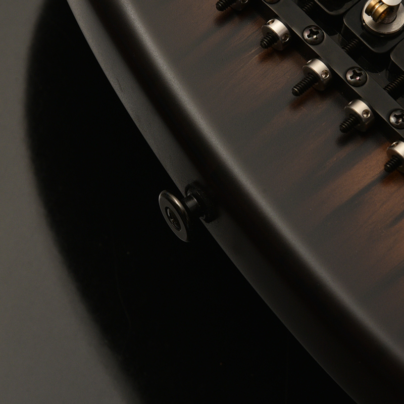 ブリッジにはサドルレス機構を持つ「Ray Ross®」ブリッジを搭載。均一な弦振動から来るロングサスティーンに加え、開発者「アーロン・ロス氏」が「ピアノトーン」と称する独特の倍音豊かなサウンドが特徴的なブリッジです。さらに通常のベースブリッジと異なり弦高の上下によるテンションの変化が無い為、弦高を下げたセッティングでも適切なテンション感を維持することができます。