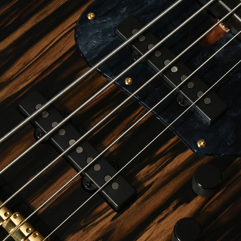 アメリカ、ノースカロライナ州のハンドワイアリングピックアップメーカー「Mojotone」をセレクト。アルニコ5マグネットとファイバー素材のボビンを使用し、リアとフロントの両ピックアップの間で音量と音質のバランスが保たれるよう精密な調整が施されています。