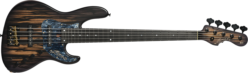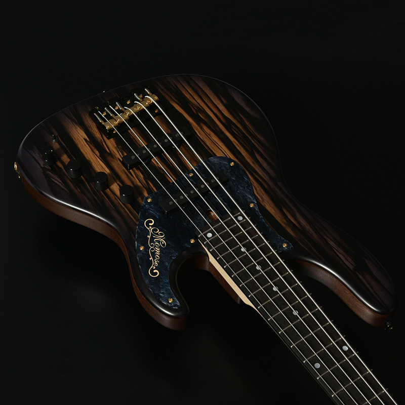 別名「ブラック&ホワイトエボニー」として知られる、和材の黒柿と似た白黒模様の杢目が特徴的な「ペールムーンエボニー」をボディトップに使用した1本。ボディ本体に使用したアフリカンマホガニーはギターとして理想の重量、硬さを併せ持つ言わずと知れた木材のひとつ。ミッドレンジの強調された粘り気のあるサウンドが魅力です。