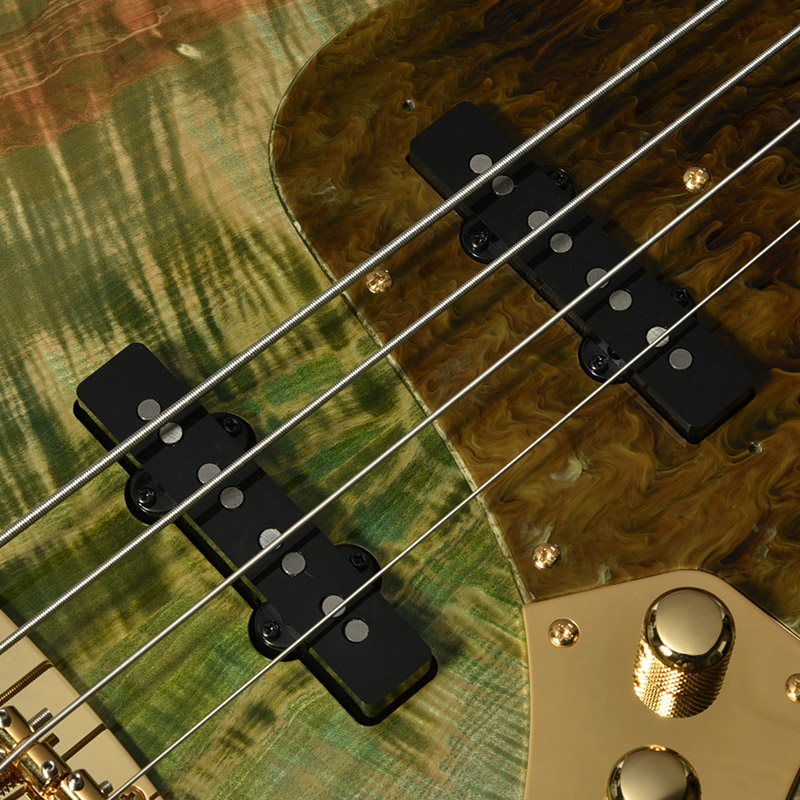 アメリカ、ノースカロライナ州のハンドワイアリングピックアップメーカー「Mojotone」をセレクト。アルニコ5マグネットとファイバー素材のボビンを使用し、リアとフロントの両ピックアップの間で音量と音質のバランスが保たれるよう精密な調整が施されています。