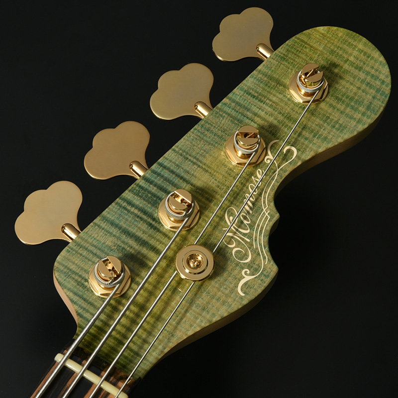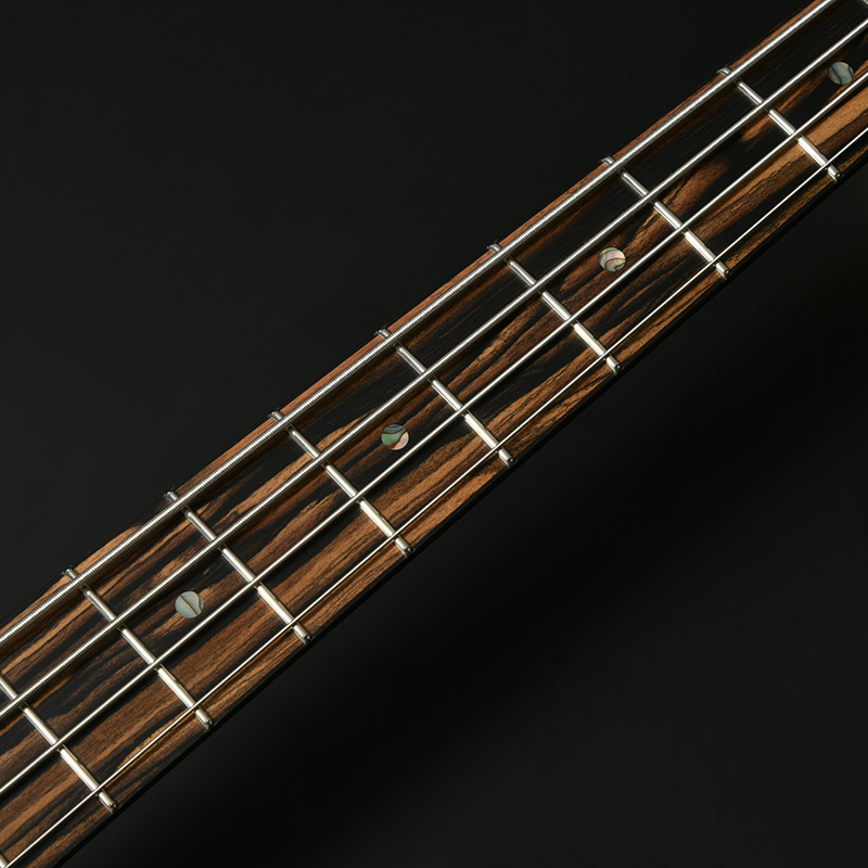 指板材にはペールムーンエボニーを使用。定番のローズウッドなどに比べて重量があり、音の立ち上がりが早く輪郭のあるトーンと伸びやかなサスティーンを生み出します。