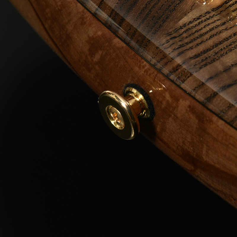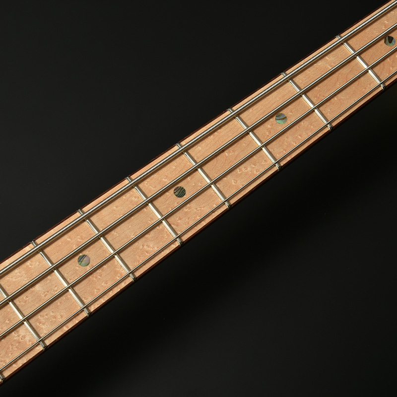 本イベント用に厳選されたバーズアイ・メイプルを指板に採用。ハードメイプル種の中でもごく稀に見つかる希少性の高い木材で、自然が生み出したその装飾には唯一無二の美しさを感じさせられます。ネック材にはネック裏はもちろん、ヘッドストックの先端までストライプの入ったハイグレードのフレイムメイプルを選定。芸術的なルックスをぜひその目でお確かめください。