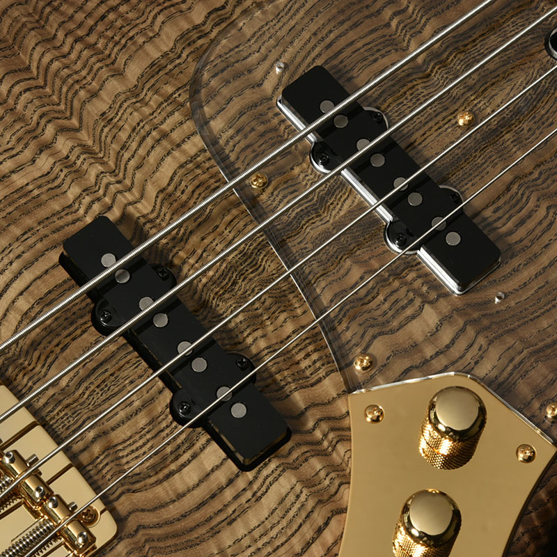 アメリカ、ノースカロライナ州のハンドワイアリングピックアップメーカー「Mojotone」をセレクト。アルニコ5マグネットとファイバー素材のボビンを使用し、リアとフロントの両ピックアップの間で音量と音質のバランスが保たれるよう精密な調整が施されています。