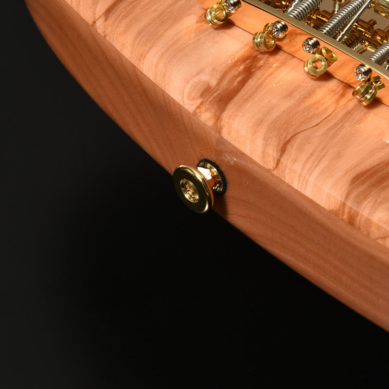 黒々とした高級感のあるルックスでおなじみのエボニー材を採用。定番のローズウッドなどに比べて重量があり、立ち上がりが早く輪郭のあるトーンと伸びやかなサスティーンを生み出します。