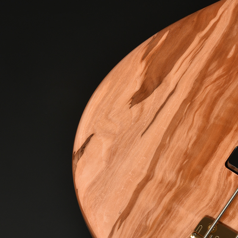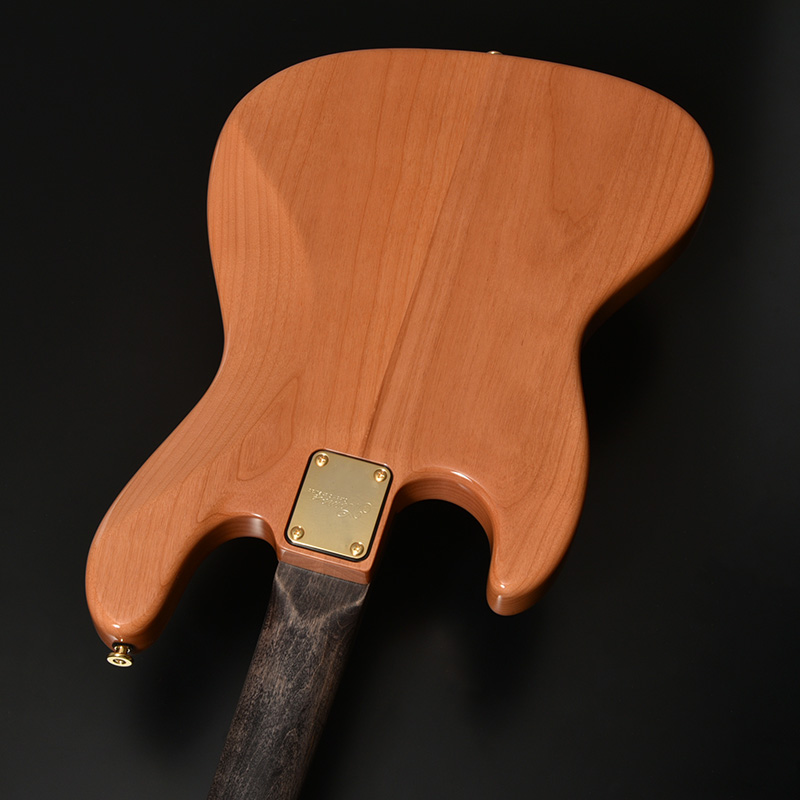 2025福岡ギターショーに、桜材をボディトップに採用した限定モデルが登場。硬質で密度の高い桜材は芯のある明瞭なサウンドを特徴とします。ボディ本体には定番のアルダー材を使用し、より実践的なサウンドを突き詰めています。