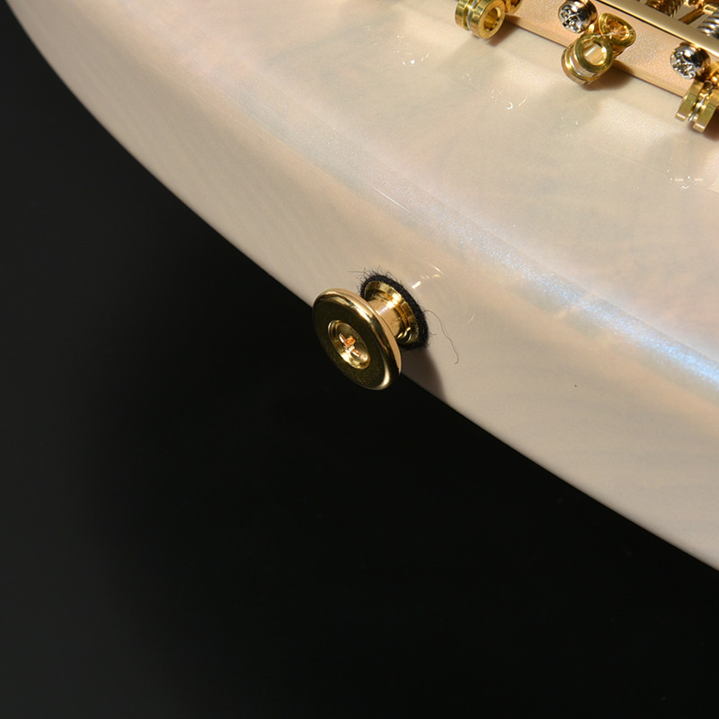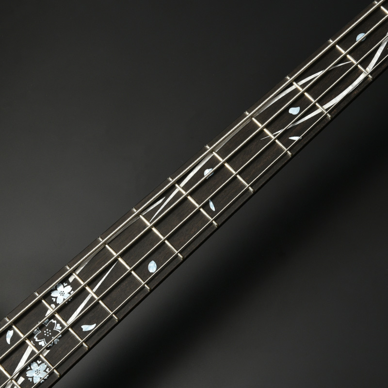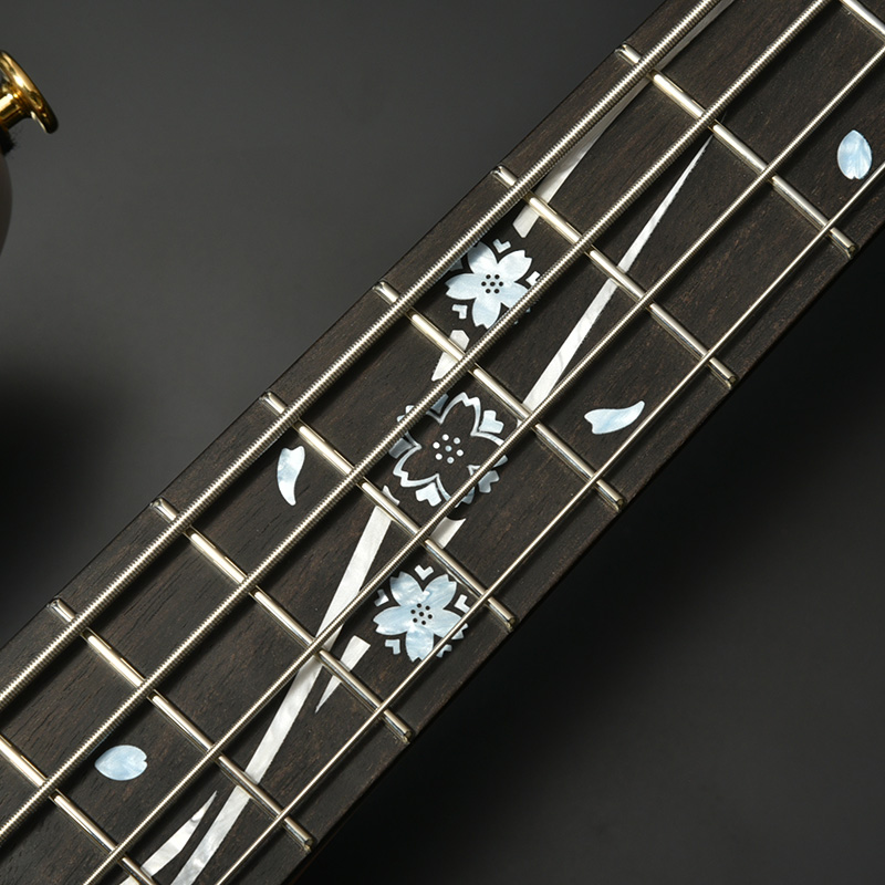 指板には川に流れゆく桜をイメージした「ツリー・オブ・ライフ」インレイを施しております。見た目にも美しい本仕様はプレイヤーの手元を華やかに彩ります。