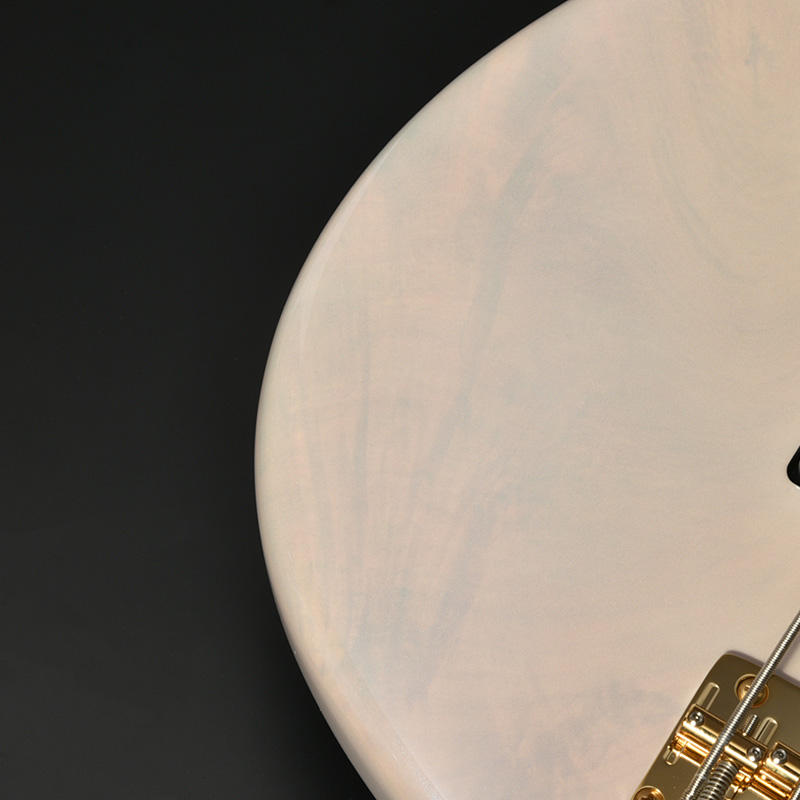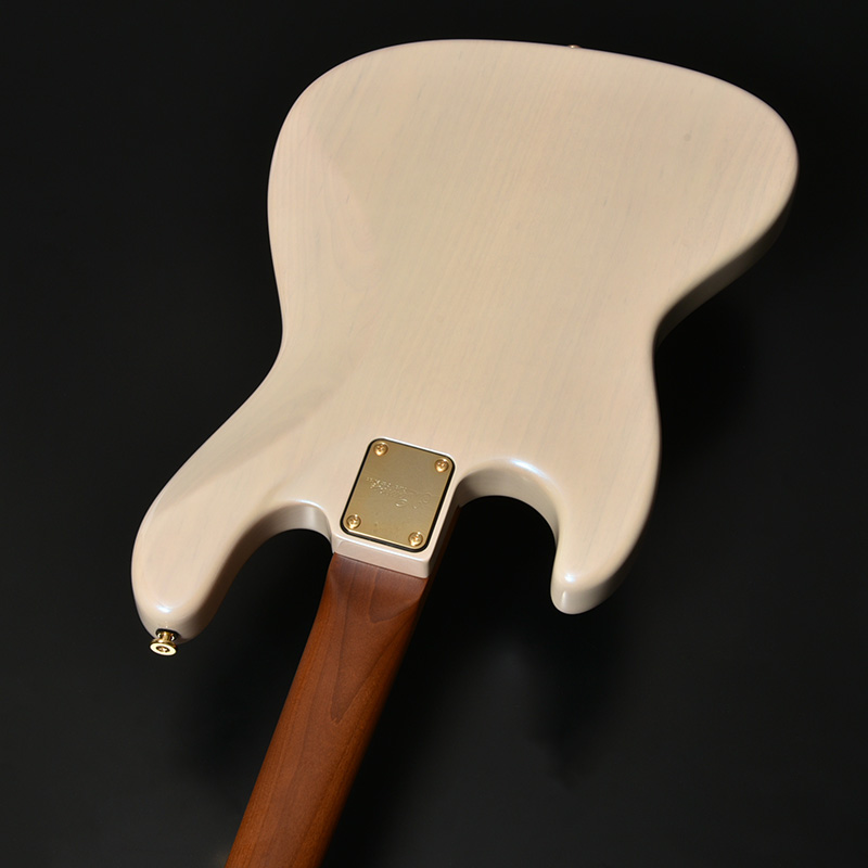 2025福岡ギターショーに、桜材をボディトップに採用した限定モデルが登場。硬質で密度の高い桜材は芯のある明瞭なサウンドを特徴とします。ボディ本体には定番のアルダー材を使用し、より実践的なサウンドを突き詰めています。