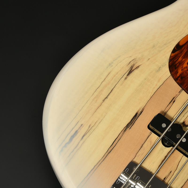 スポルテッド杢の現れたトチ材を使用した、福岡ギターショー2025限定仕様モデル。「スポルテッド(Spalted)」とは、自然の中で細菌などによって腐朽(ふきゅう)が進んだ結果、特徴的な模様を持つ木目が生まれた木材に使用される言葉です。その模様は一つとして同じものはなく、世界に一本だけの美しいデザインとなります。