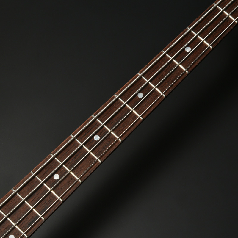 紫檀(したん)の和名を持つローズウッドの一種「インディアンローズウッド」は最もスタンダードな指板材のひとつであり、サウンド面でも実用性の高い仕様となっています。
