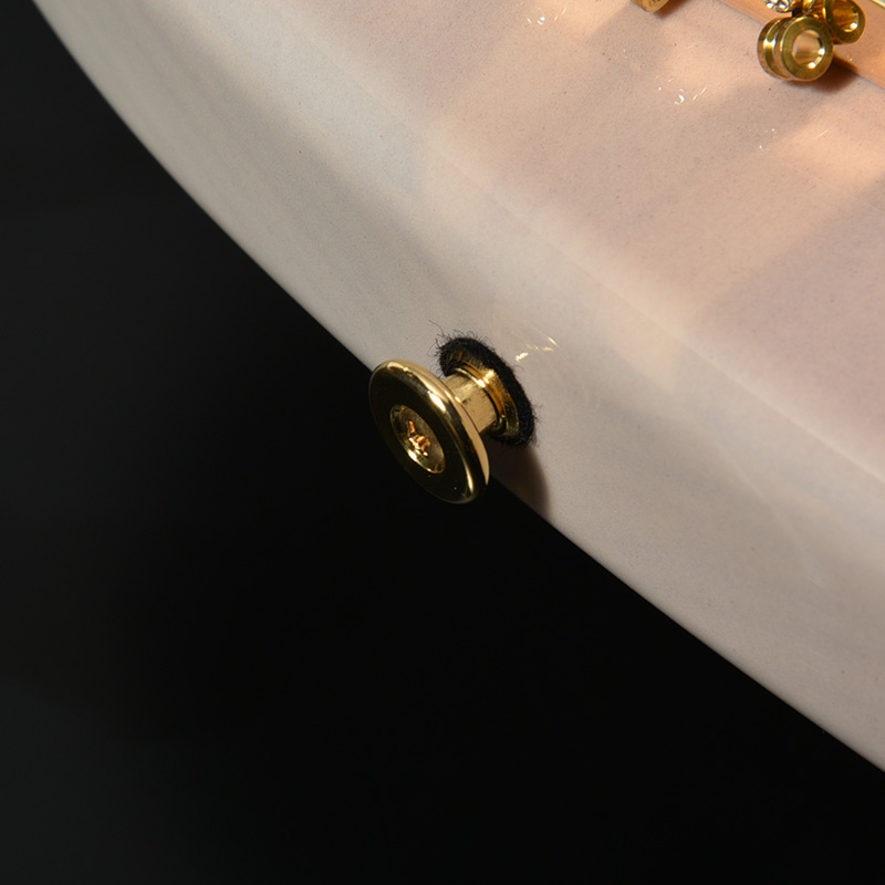 奈良県黒滝村産の「吉野千本桜」として知られる希少な桜材をボディトップに使用しています。採取地である吉野山は2004年に登録された世界遺産「紀伊山地の霊場と参詣道」を構成する地のひとつであり、日本屈指の桜の名所に数えられます。木肌の白く帯状になっている部分がボディ中央にくるよう組合せることで、より一層木目の美しさを際立たせています。