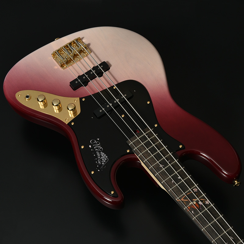 吉野山には約3万本もの桜が咲き誇ると言われています。谷から尾根にかけて広がるその様子をピックガードロゴと共に表現しました。