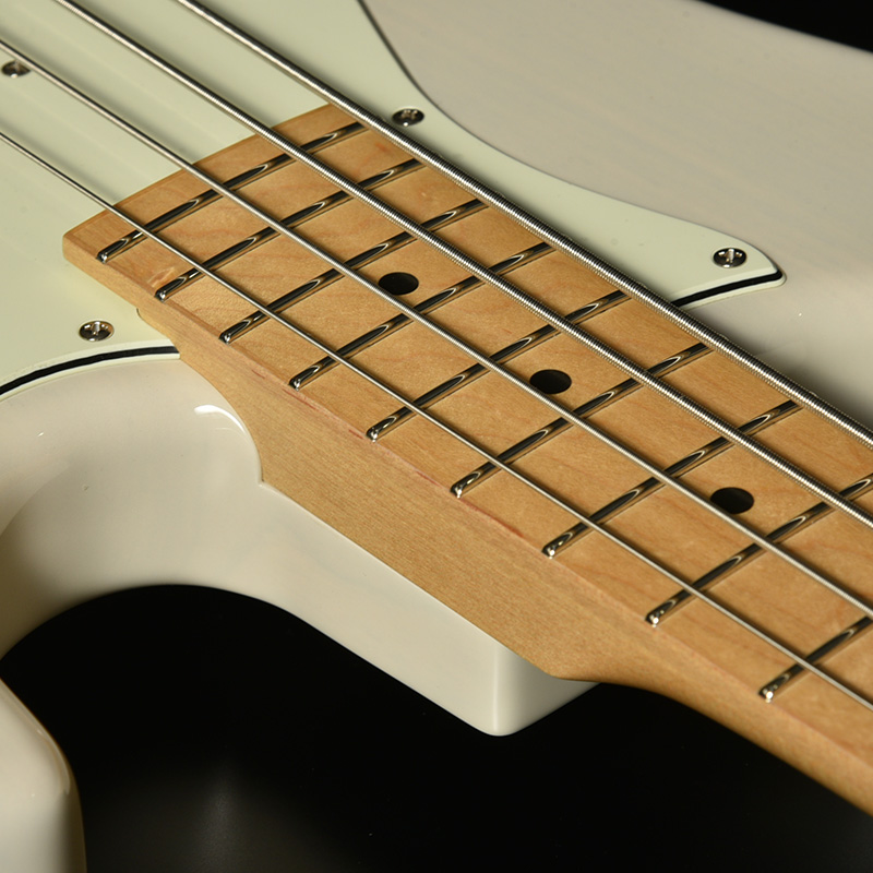 MJモデルでは一般的なJBタイプに比べ高音弦側ホーンのカットをより深めに設計。手の大きなプレイヤーでもスムーズにハイフレットへアクセスできる優れた演奏性を備えています。