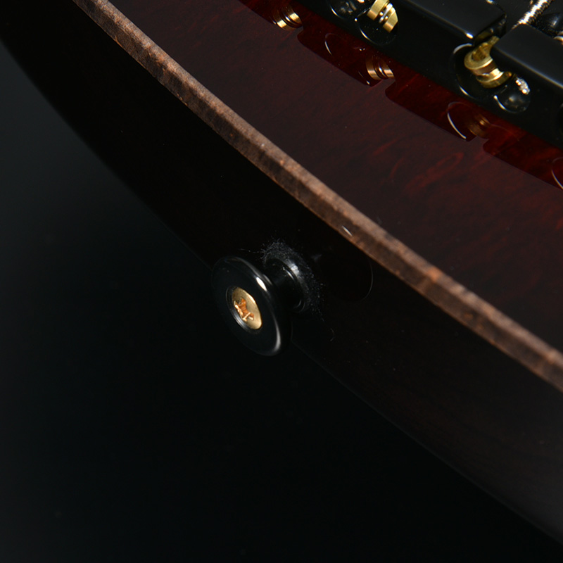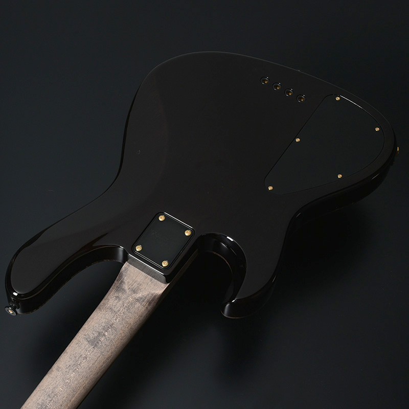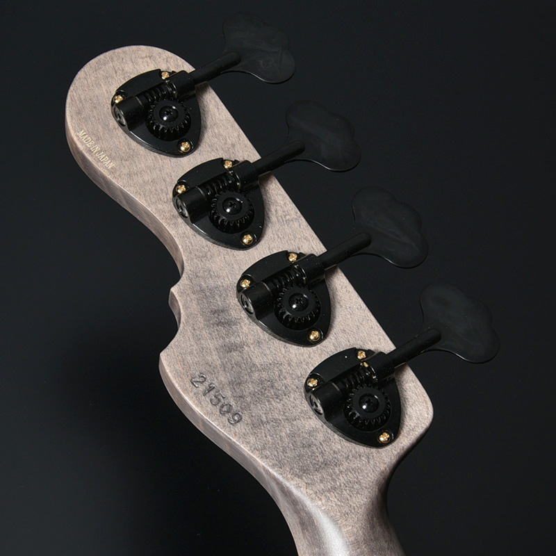 指板材にはペールムーンエボニーを使用。定番のローズウッドなどに比べて重量があり、音の立ち上がりが早く輪郭のあるトーンと伸びやかなサスティーンを生み出します。本モデルではネックのメイプル材を反りやねじれに強い「柾目(まさめ)」で製材することで、安定感抜群の演奏性と末長く愛用いただける仕様を実現しています。