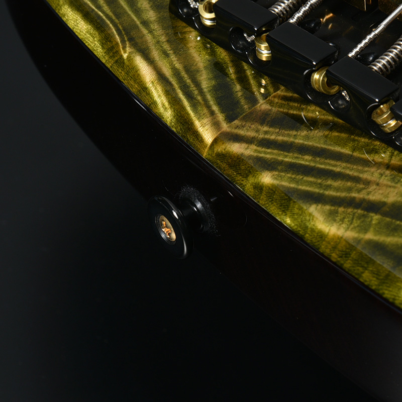 アメリカ、ノースカロライナ州のハンドワイアリングピックアップメーカー「Mojotone」をセレクト。アルニコ5マグネットとファイバー素材のボビンを使用し、リアとフロントの両ピックアップの間で音量と音質のバランスが保たれるよう精密な調整が施されています。