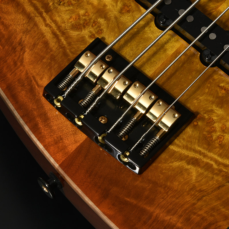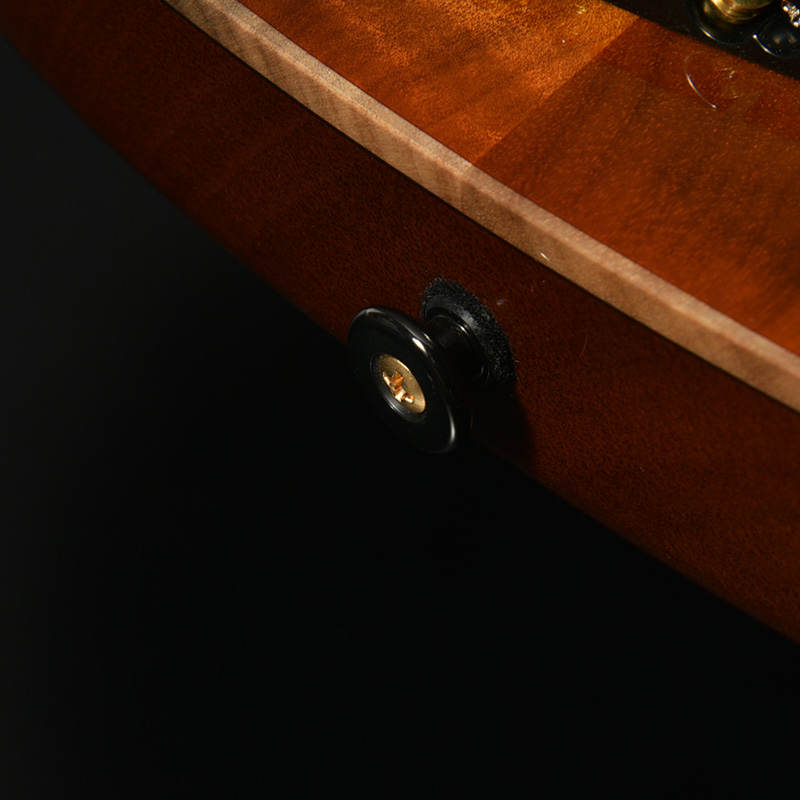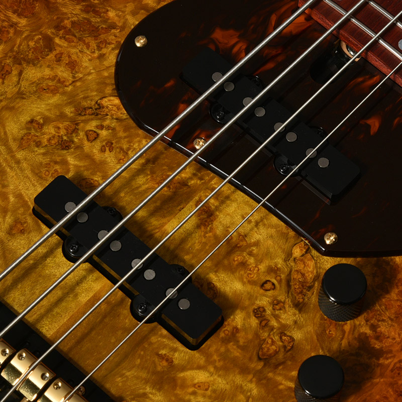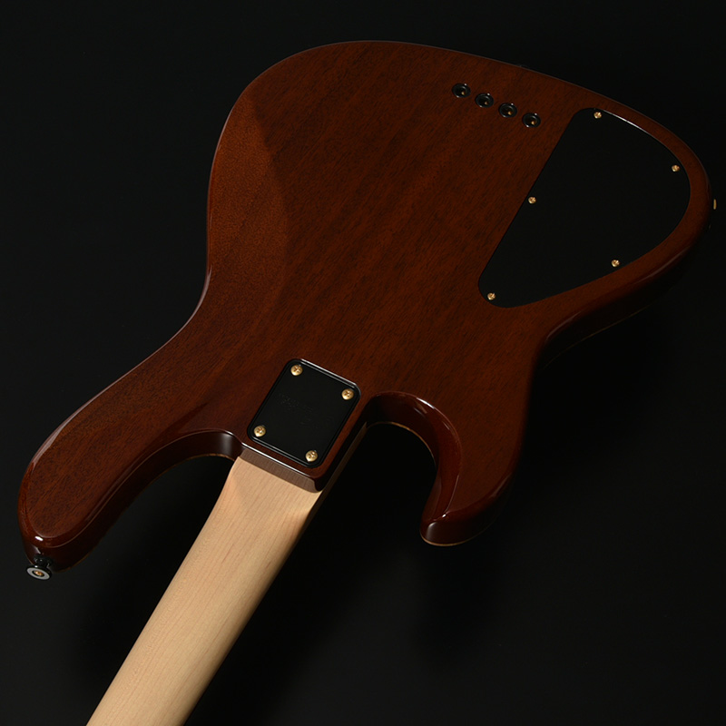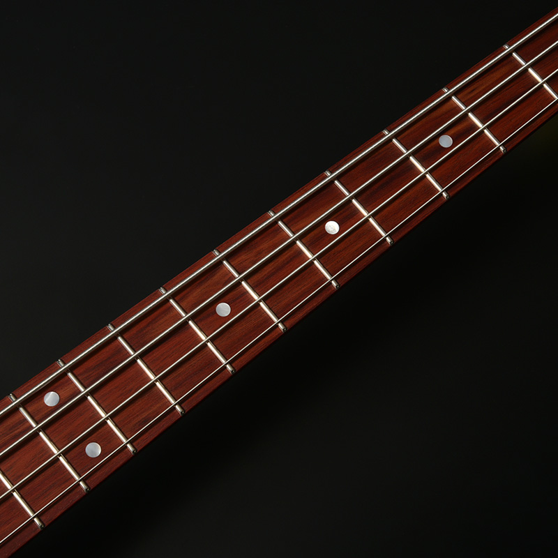 指板に用いられた「ブラッドウッド」は赤褐色の色味を持つ木材で、アタック感のあるキレの良いサウンドを生み出します。本モデルではネックのメイプル材を反りやねじれに強い「柾目(まさめ)」で製材することで、安定感抜群の演奏性と末長く愛用いただける仕様を実現しています。