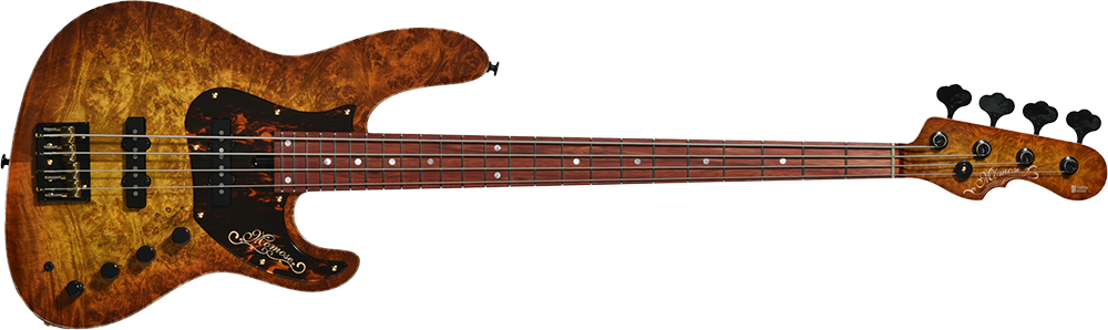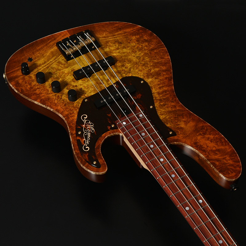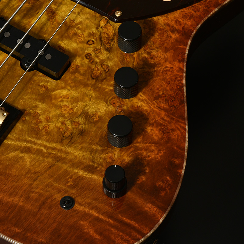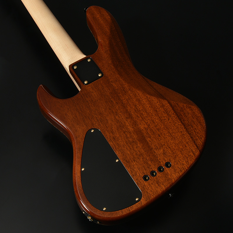 ボディトップには南米を原産とし、独特な杢目が特徴のマーブルウッドを採用。バール杢ともよく似たルックスで、抜群の存在感を放ちます。ボディ本体に使用したアフリカンマホガニーはギターとして理想の重量、硬さを併せ持つ言わずと知れた木材のひとつ。ミッドレンジの強調された粘り気のあるサウンドが魅力です。