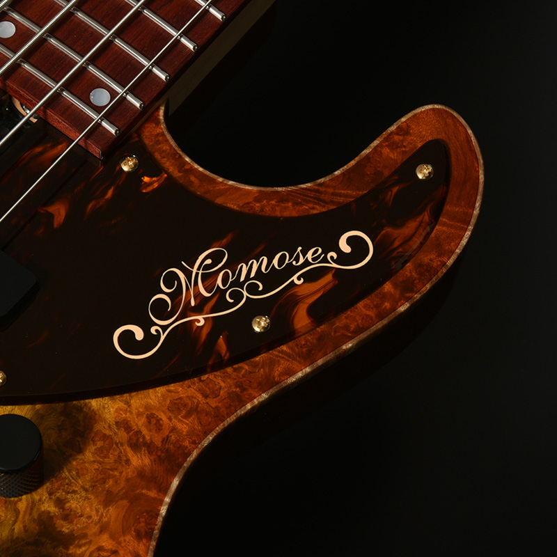 シリーズ名に含まれる『Virtuoso』とは芸術の(特に音楽の)名人、名手、大家、巨匠、という意味を持つ英語です。誰もが自分の音楽を表現し、発信できるようになった現代に求められる仕様を、Momose独自の解釈により盛り込みました。Hipshot® Glip-Lockペグの搭載やGOTOH®製のアーミングに優れたブリッジの新採用など、ハードウェアも一新されています。