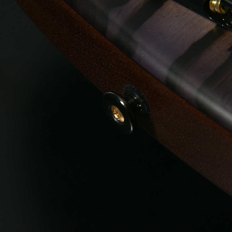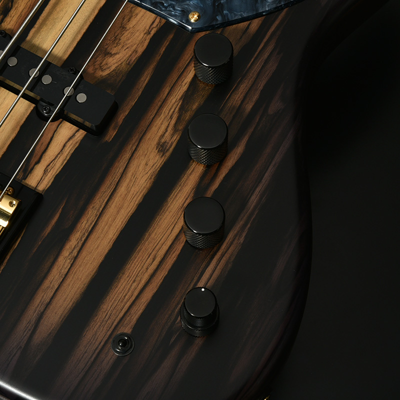 指板には黒々とした高級感のあるルックスでおなじみのエボニー材を採用。定番のローズウッドなどに比べて重量があり、立ち上がりが早く輪郭のあるトーンと伸びやかなサスティーンを生み出します。本モデルではネックのメイプル材を反りやねじれに強い「柾目(まさめ)」で製材することで、安定感抜群の演奏性と末長く愛用いただける仕様を実現しています。