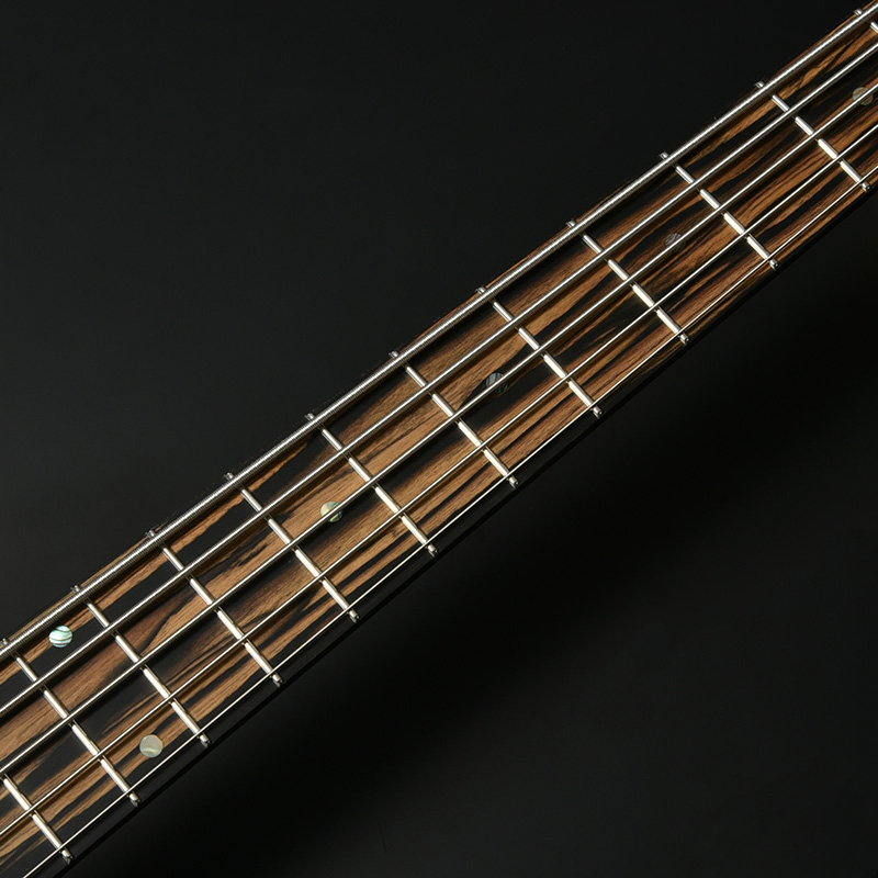 指板材にはペールムーンエボニーを使用。定番のローズウッドなどに比べて重量があり、音の立ち上がりが早く輪郭のあるトーンと伸びやかなサスティーンを生み出します。