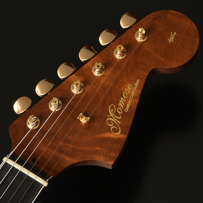 スプルース材の柔らかくエアー感溢れるサウンドが魅力で、バックのマホガニー材とも相まってメロウでジャジーなサウンドは唯一無二の個性となります。また、ネックにはサーモ加工された極上のフレイムメイプルを使用しており、トラ杢のルックスだけでなくサウンド面での立ち上がりの良さにも貢献しております。