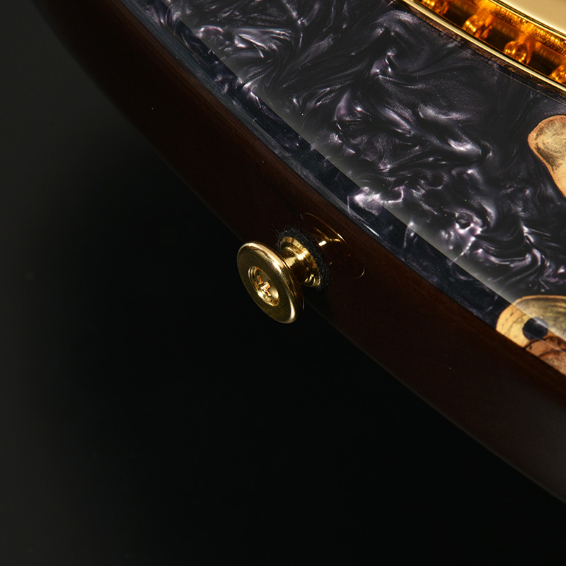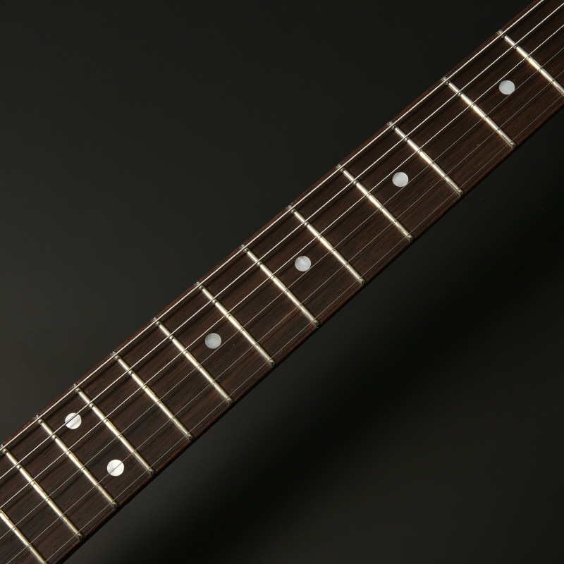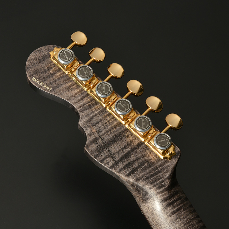ツリーオブライフのインレイが施された指板には、近年のその需要に対して希少性を増しているマダガスカルローズウッドを採用。レギュラー製品では採用を終了しており、本数限定製作のショーモデルだからこそ実現した仕様となります。ネック材のフレイムメイプルは、ヘッドストックの先端までストライプの入ったハイグレードな個体を厳選。芸術的なルックスをぜひその目でお確かめください。