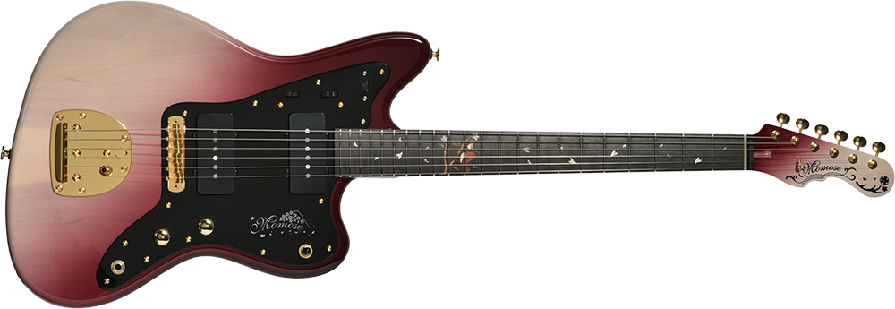 吉野山には約3万本もの桜が咲き誇ると言われています。谷から尾根にかけて広がるその様子をピックガードロゴと共に表現しました。