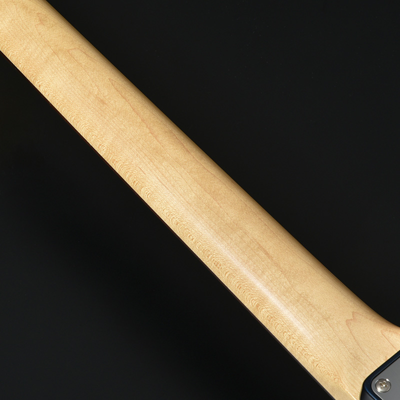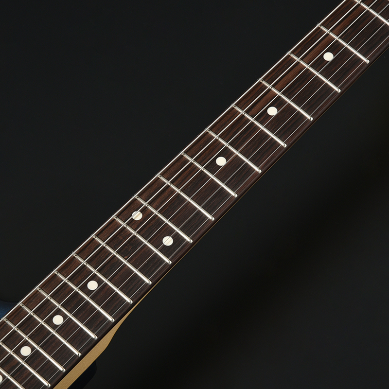 指板サイドには指板と同材を使用したウッドバインディングが施されています。これにより指板サイドが非常に滑らかになるほか、フレットのバリが飛び出してしまうようなトラブルも防止します。