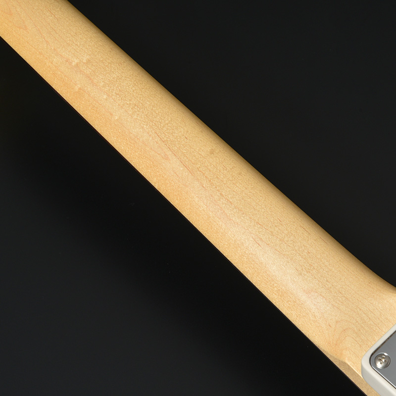 指板サイドには指板と同材を使用したウッドバインディングが施されています。これにより指板サイドが非常に滑らかになるほか、フレットのバリが飛び出してしまうようなトラブルも防止します。