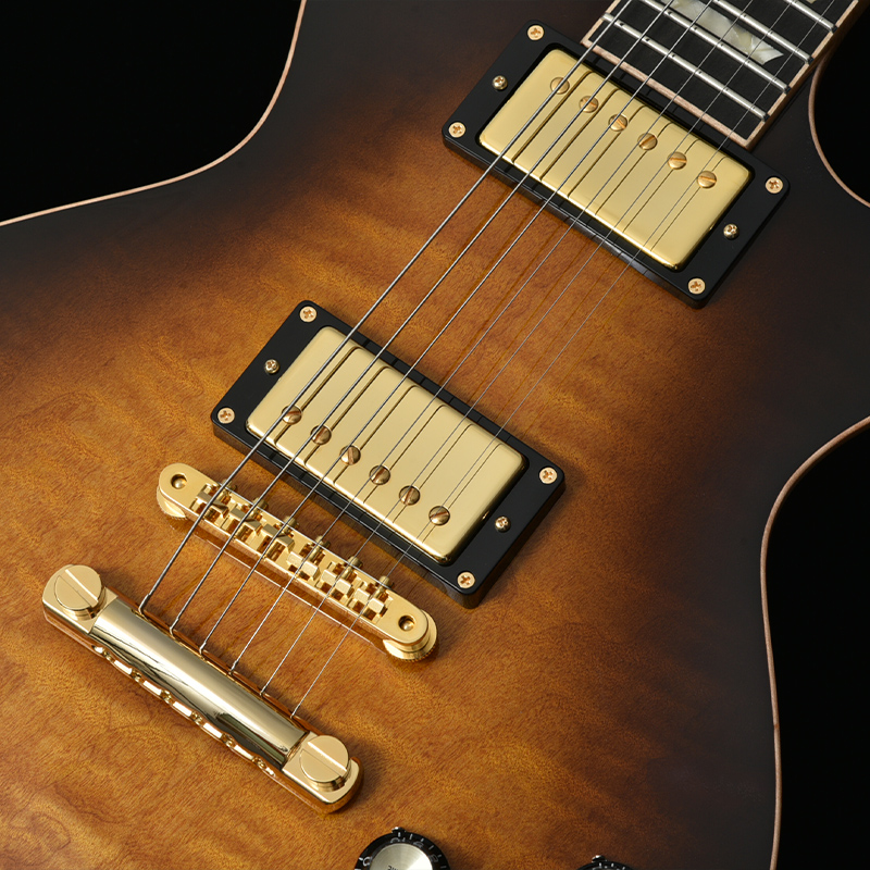 トーンウッドの代表格ともいえるのが、このフレイムメイプルです。手に取った瞬間に高級感を感じさせられる佇まいとステージ映え間違いなしのルックスをぜひお確かめください。