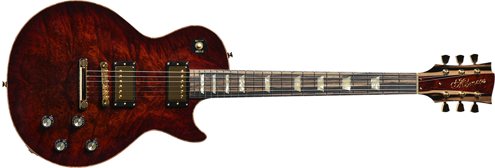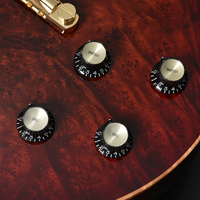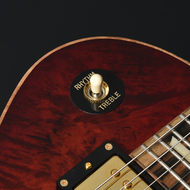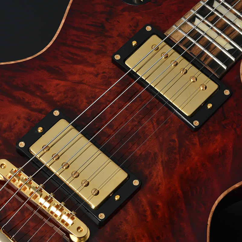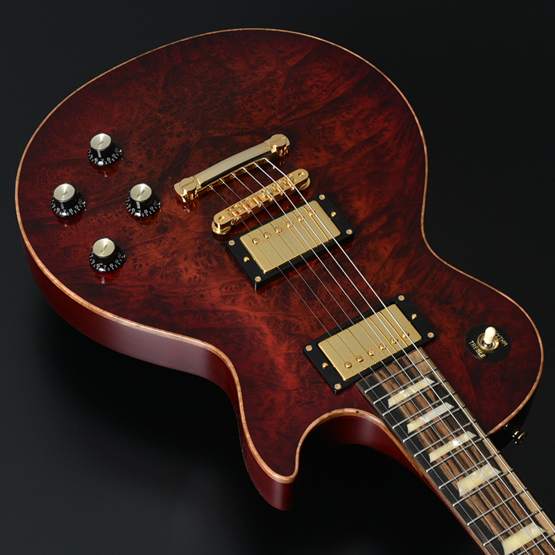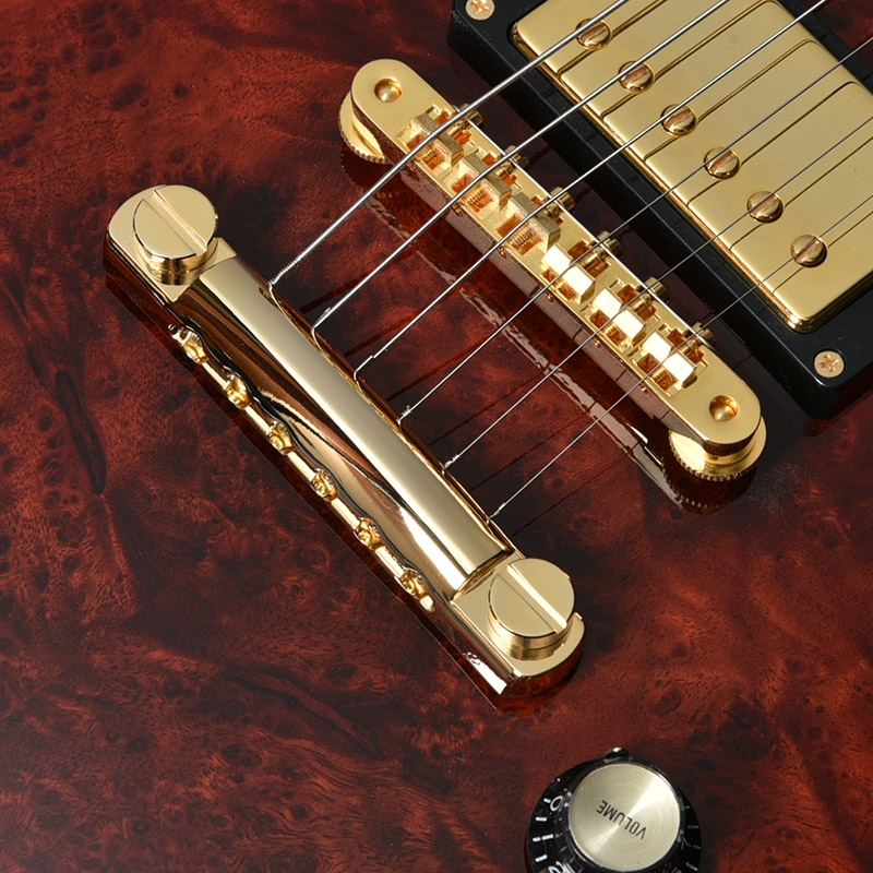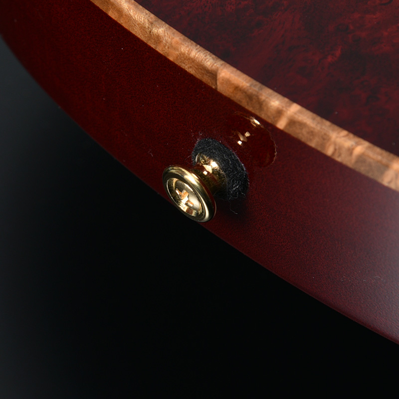 ボディトップには南米を原産とし、独特な杢目が特徴のマーブルウッドを採用。バール杢ともよく似たルックスで、抜群の存在感を放ちます。ボディ本体には「ホンデュラスマホガニー」を採用。現在入手可能な唯一の正式なマホガニー種でもあり、温かみのある中音域に優れたサウンドを持ちます。