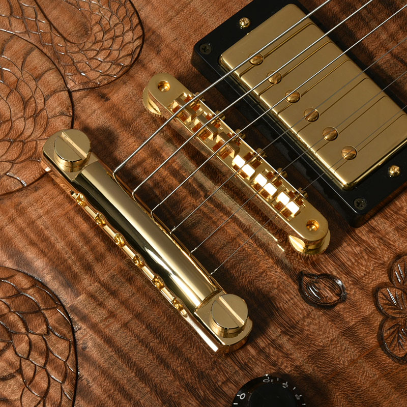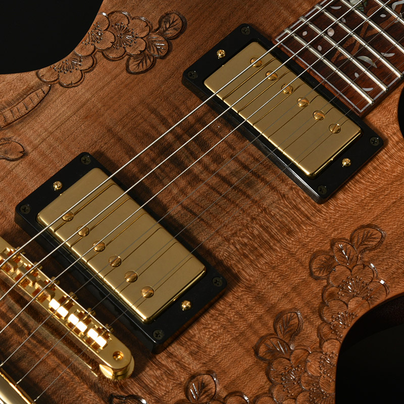 ボディとネックには希少性が高く、中音域の暖かなサウンドが特徴のホンジュラスマホガニーを採用。ボディは1ピースで仕上げられ、そのサウンドを存分に味わえる仕様を実現しています。