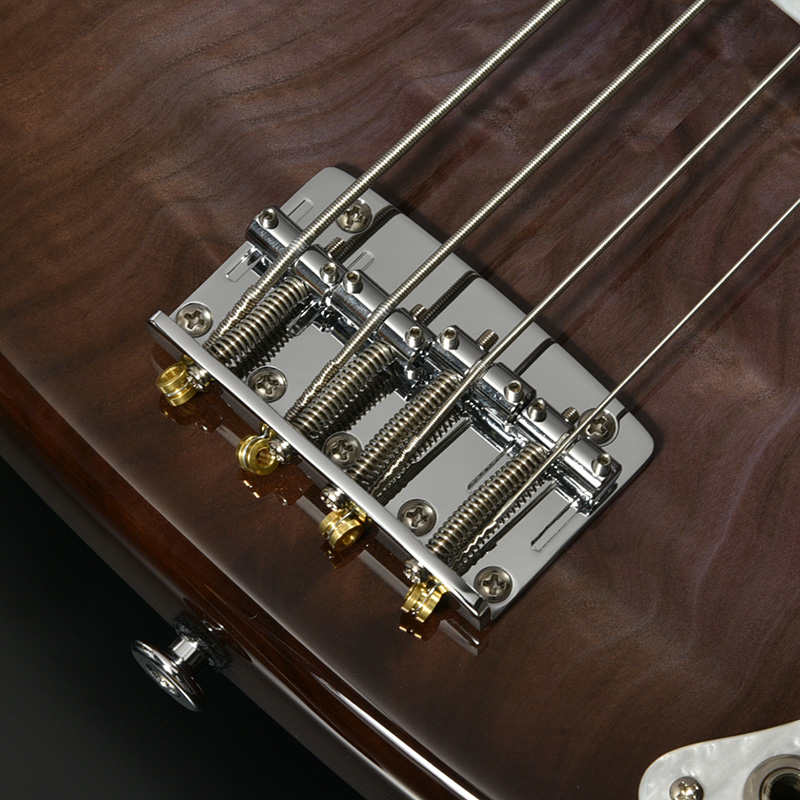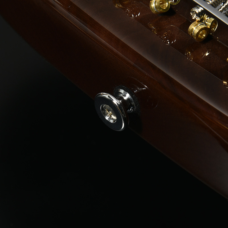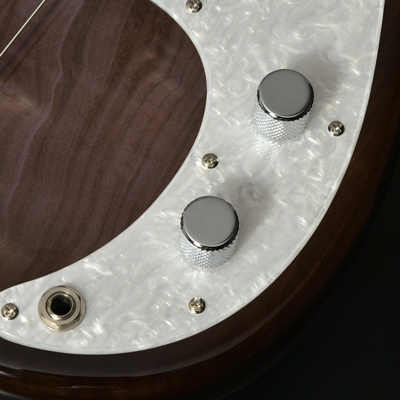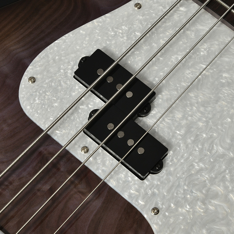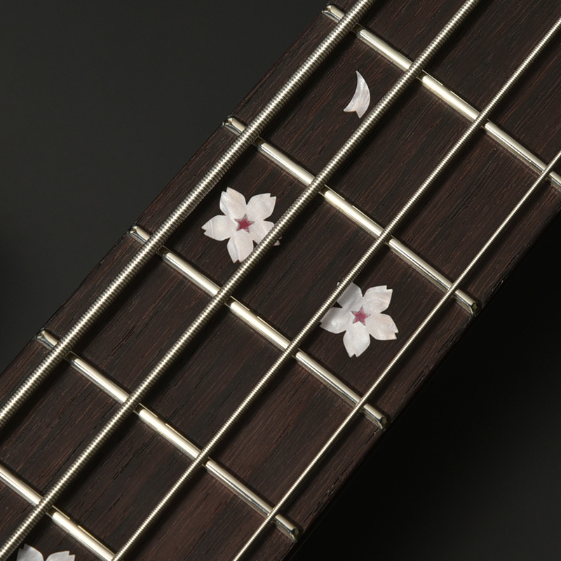 紫檀(したん)の和名を持つローズウッドの一種「インディアンローズウッド」は最もスタンダードな指板材のひとつであり、サウンド面でも実用性の高い仕様となっています。