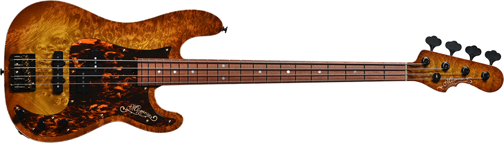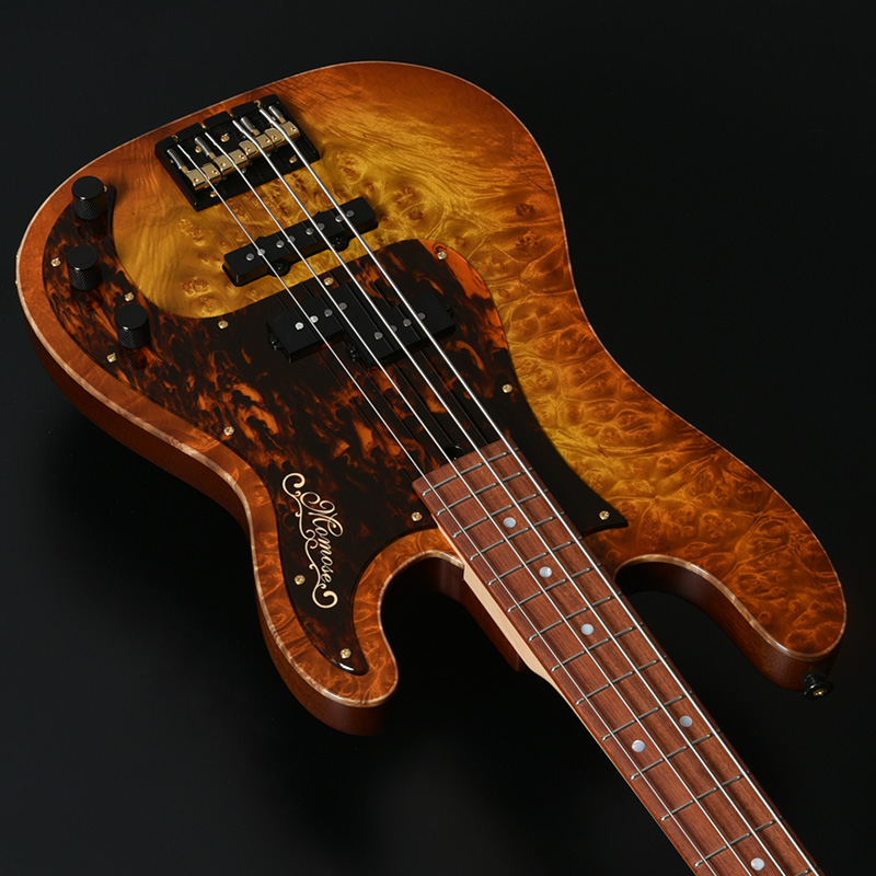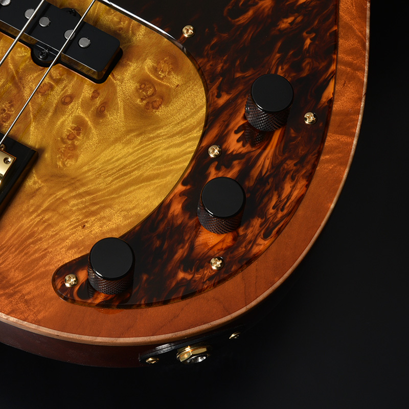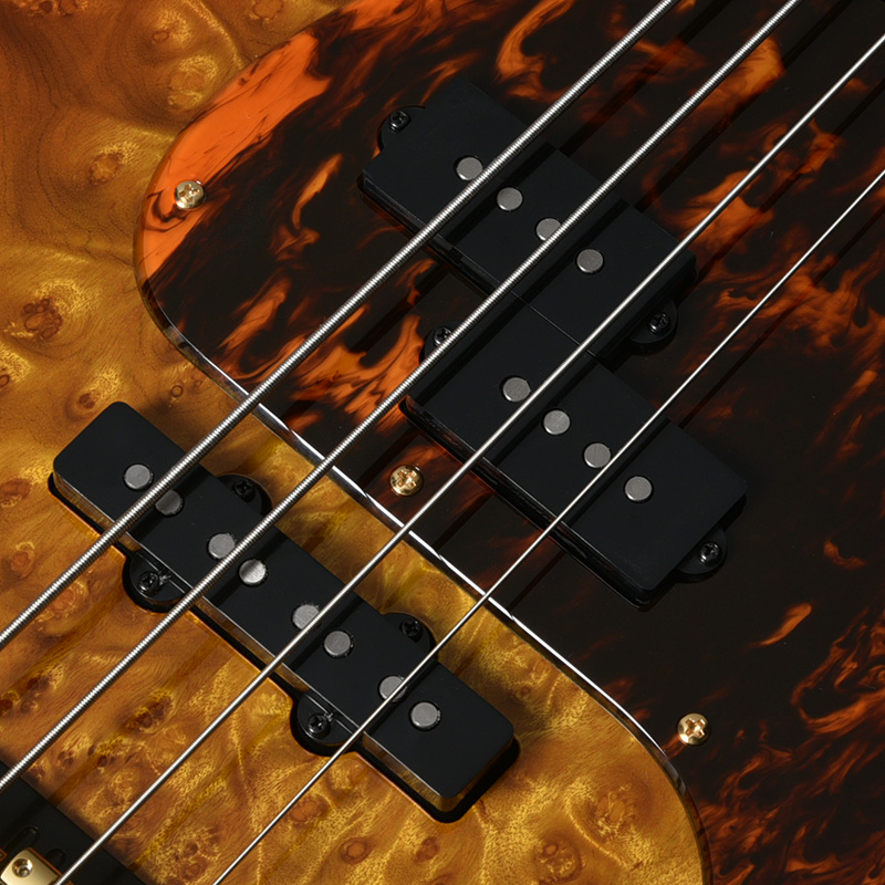 フロントポジションにはMomoseオリジナルピックアップ「VP-1」をマウントし、リアポジションにはレギュラーモデルでも使用している「VJ-1」を使用。双方アルニコ5マグネットを採用し、ブライトな高音域と厚みのある低音感を兼ね備えたベーストーンを出力します。様々なプレイスタイルに対応できる、ジャンルレスなサウンドをご体感ください。