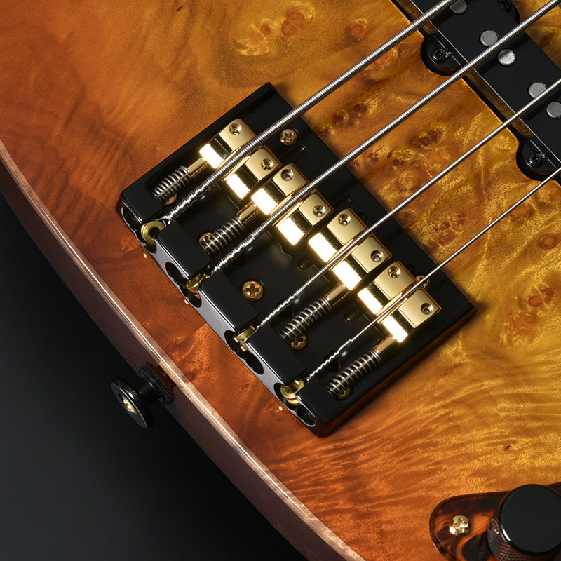 指板に用いられた「ブラッドウッド」は赤褐色の色味を持つ木材で、アタック感のあるキレの良いサウンドを生み出します。本モデルではネックのメイプル材を反りやねじれに強い「柾目(まさめ)」で製材することで、安定感抜群の演奏性と末長く愛用いただける仕様を実現しています。