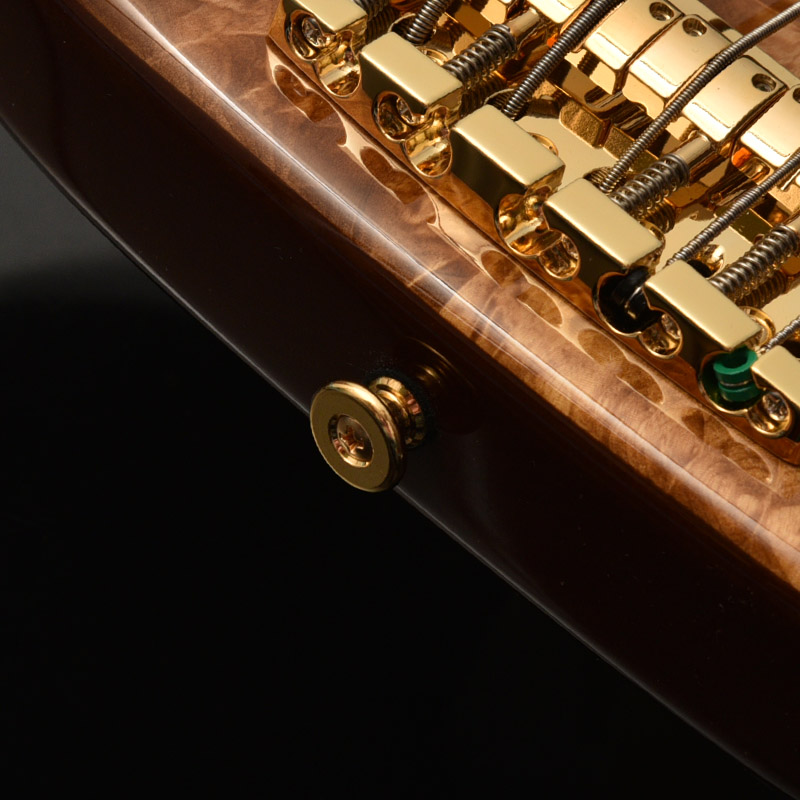 伝統的な和材の中でも特に注目度の高い「栃(トチ)」をボディトップに使用した、「One Day Guitar Show 2022」限定モデルです。本イベントのために選定された極上のフレイム杢はまさに圧巻の一言。栃は重量も適度で、サウンド面においても中音域から高音域にかけて響く音色を持っていることから、ギターの材として優れたポテンシャルを秘めています。さらに、ボディバックに用いられるアッシュ材との組み合わせで実践的なベースサウンドを突き詰めました。