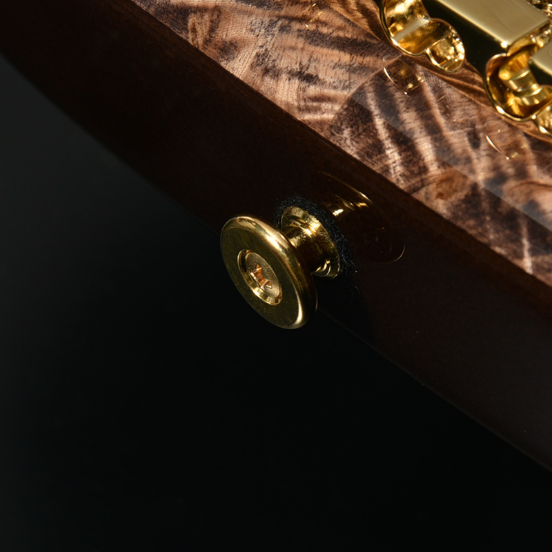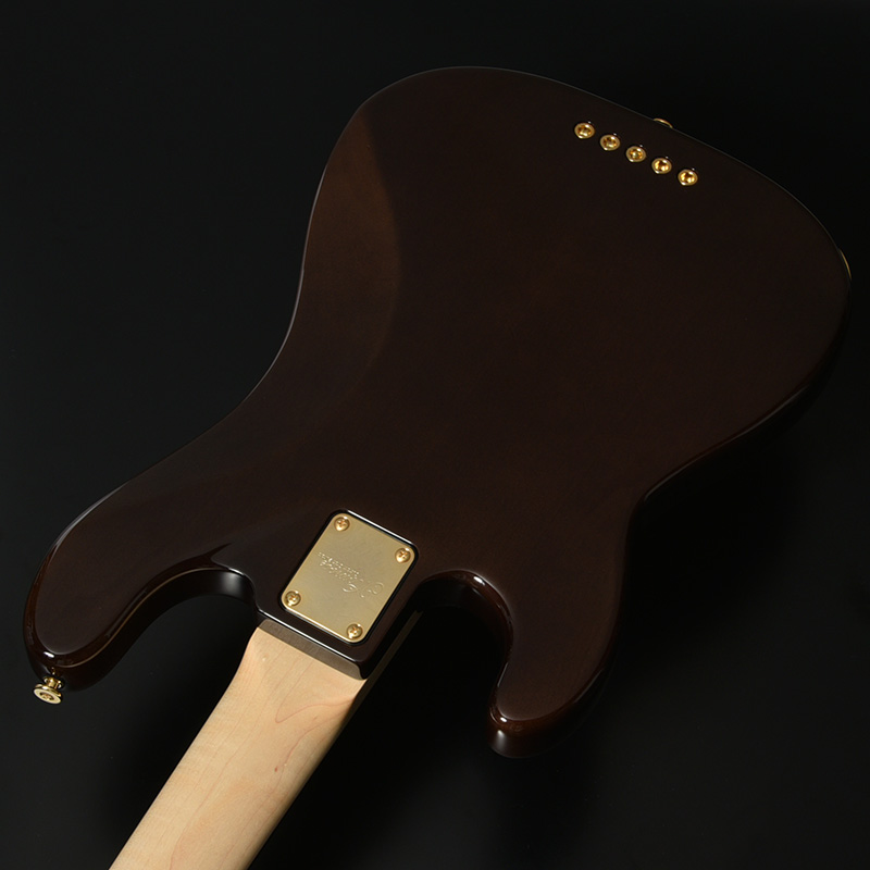 トチは東日本を中心に広く分布し、銘木と評される高級和材の一つです。杢目の出た美しい木肌は塗装映えも素晴らしく、カラーリングによって様々な表情を見せてくれます。本体カラーとマッチしたピックガードにより、統一感のあるデザインを生み出しました。