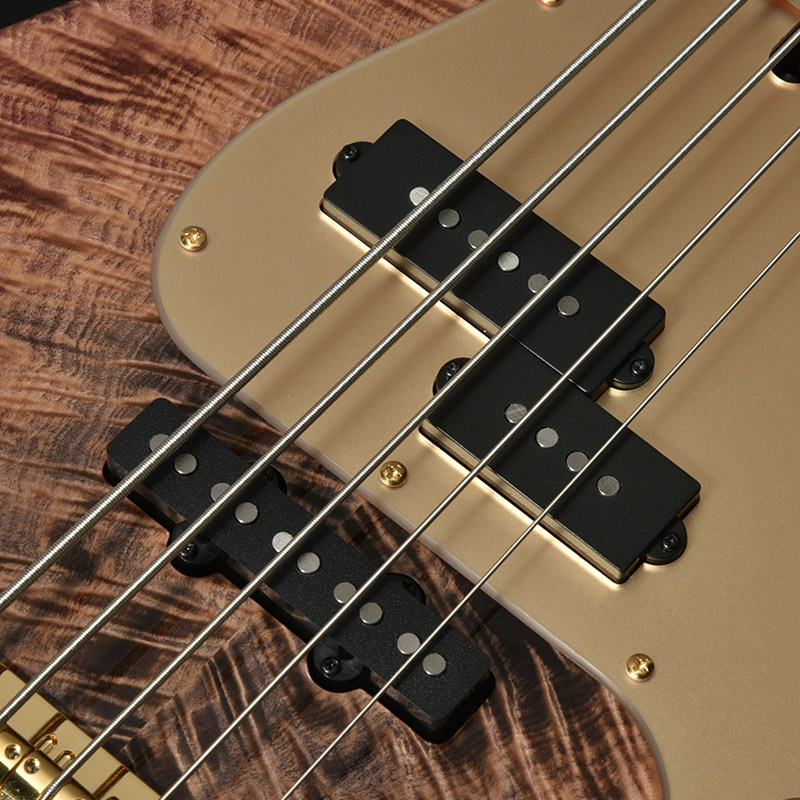 フロントポジションにはMomoseオリジナルピックアップ「VP-5」をマウントし、リアポジションにはレギュラーモデルでも使用している「VJ-5」を使用。双方アルニコ5マグネットを採用し、ブライトな高音域と厚みのある低音感を兼ね備えたベーストーンを出力します。5弦べースならではのレンジの広さと、様々なプレイスタイルに対応できるジャンルレスなサウンドをご体感ください。