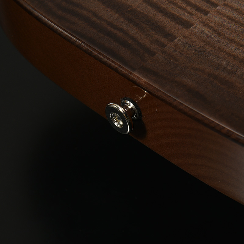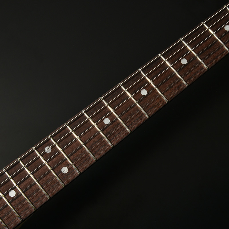 紫檀(したん)の和名を持つローズウッドの一種「インディアンローズウッド」は最もスタンダードな指板材のひとつであり、サウンド面でも実用性の高い仕様となっています。