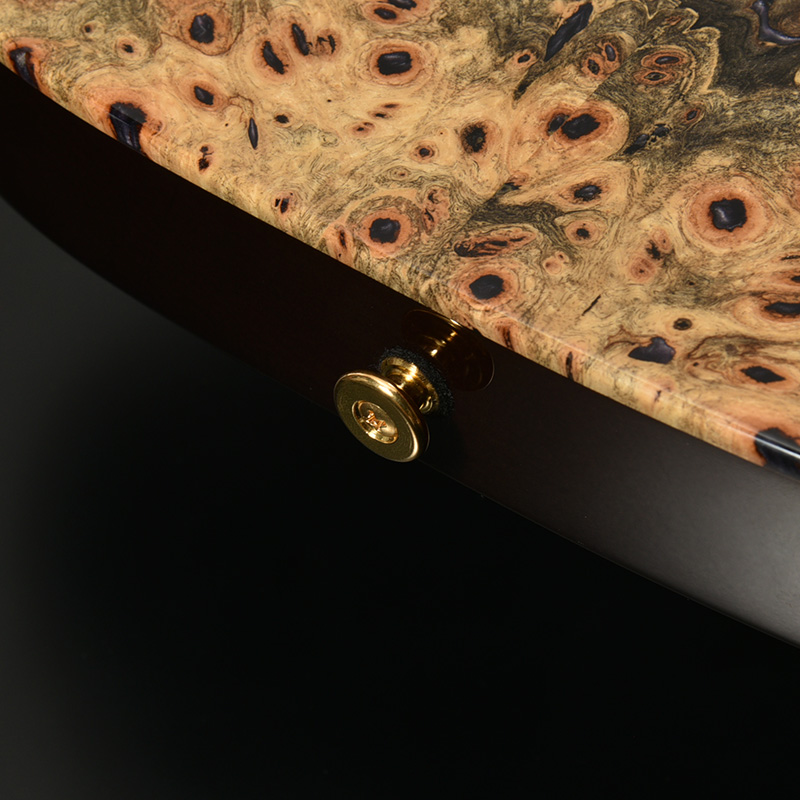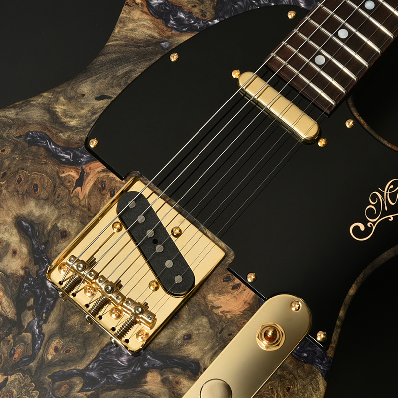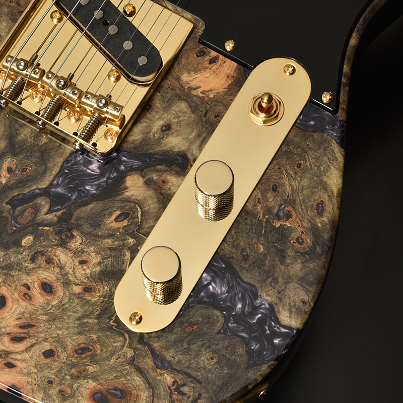 バックアイバールが自然に生み出した形を利用してレジン処理を施した、ハイブリッドモデルとも言える逸品。バール杢の魅力を最大限に引き立て、他に類を見ない独特のルックスを堪能いただける1本に仕上げました。